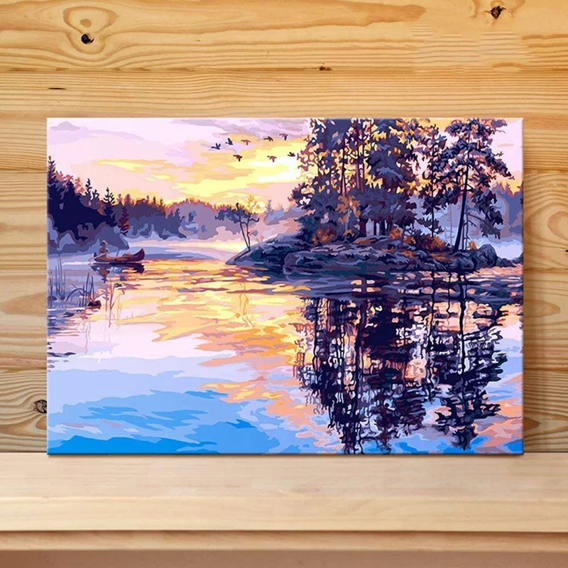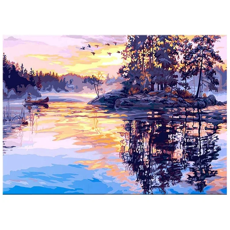 DIY Цифровая краска для начинающих, взрослый холст отражение масляной краски ing Set, с кистью, краска, отражение озера