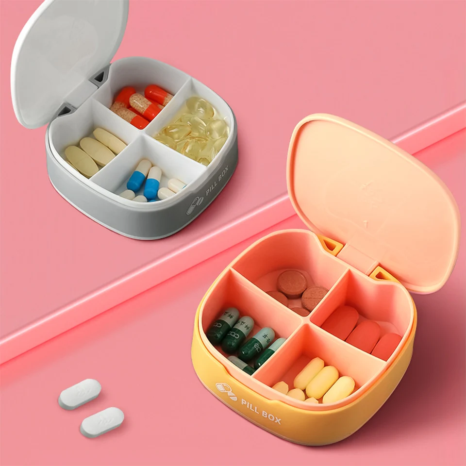 Мини Чехол для таблеток, четыре отсека в сетку, дорожная коробка для таблеток, органайзер, медицинский диспенсер для таблеток, органайзер для таблеток, коробка для таблеток, разветвитель, Органайзер