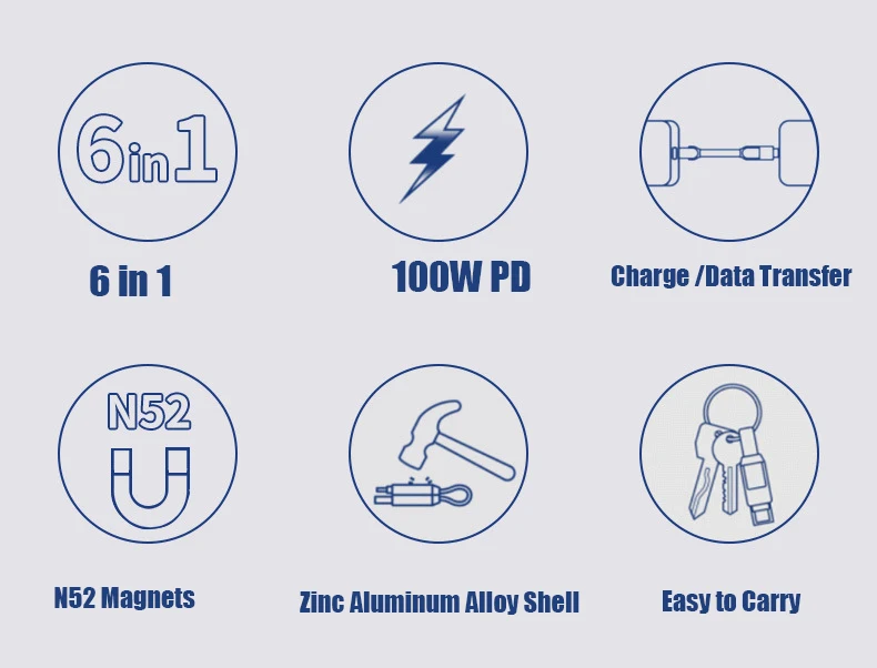 5. Этот кабель 6 в 1 поддерживает передачу мощности PD 100 Вт с одного смартфона на другой, а также с одного смартфона на другой тип портативного устройства.