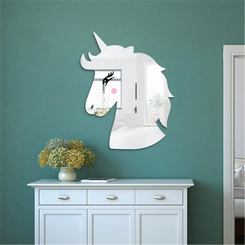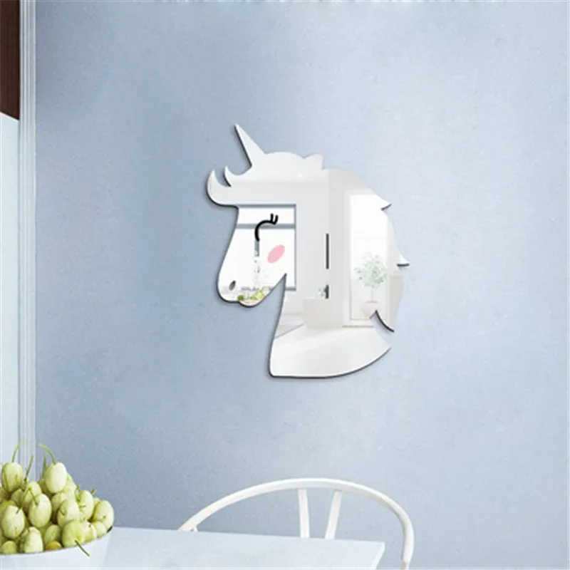 Акриловые зеркальные настенные наклейки в скандинавском стиле с единорогом для детской комнаты, домашний декор, мультяшная улыбка, единорог, наклейка на зеркало для маленьких девочек и спальни
