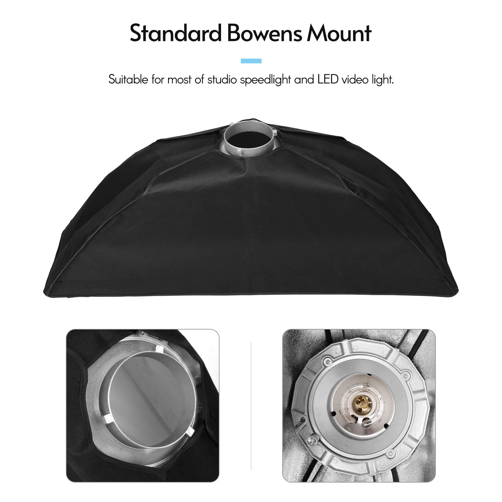 С: внутренней и внешней съемный белая насадка для рассеивания света ткань, которая будет смягчить светильник, но и позволит создать даже светильник влияние на вашем съемки.
