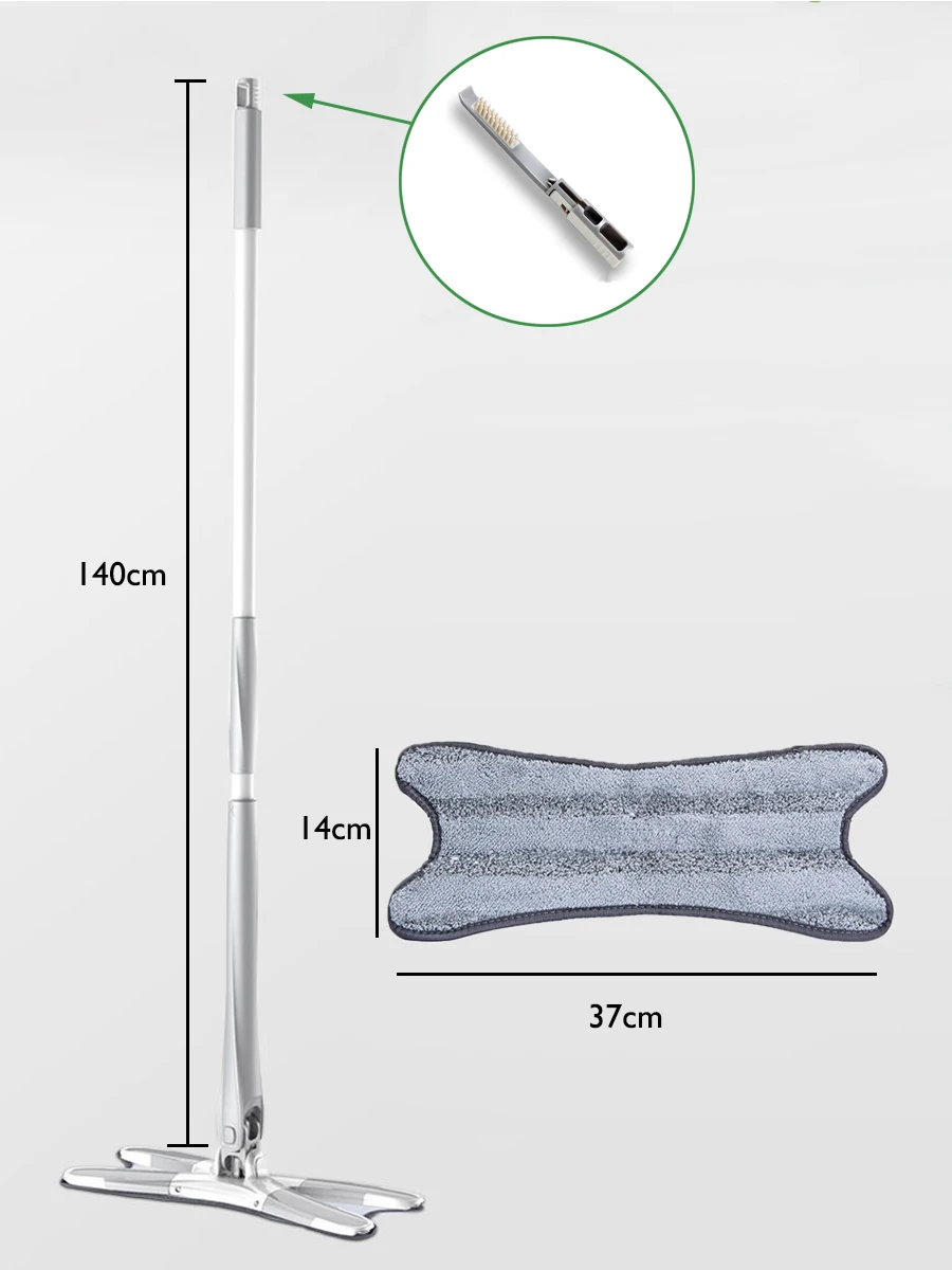 Наименование товара: плоская Швабра без рук Материал: EVA ABS микрофибра Размер изделия: швабра 37 см * 14 см, швабра 140 см (регулируемая) Диапазон использования: различные полы, окна