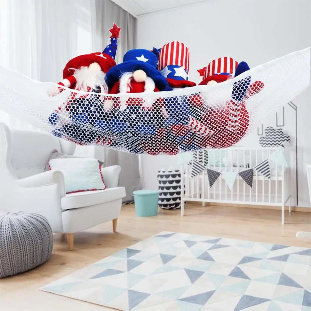 Jumbo Toy гамаки: Наша набивная сетка для животных изготовлена из высококачественного и прочного полиэфирного волокна с прочными эластичными краями. Гигантский гамак для игрушек 59x39x39 дюймов может использоваться в качестве хранения игрушек во время украшения комнаты.