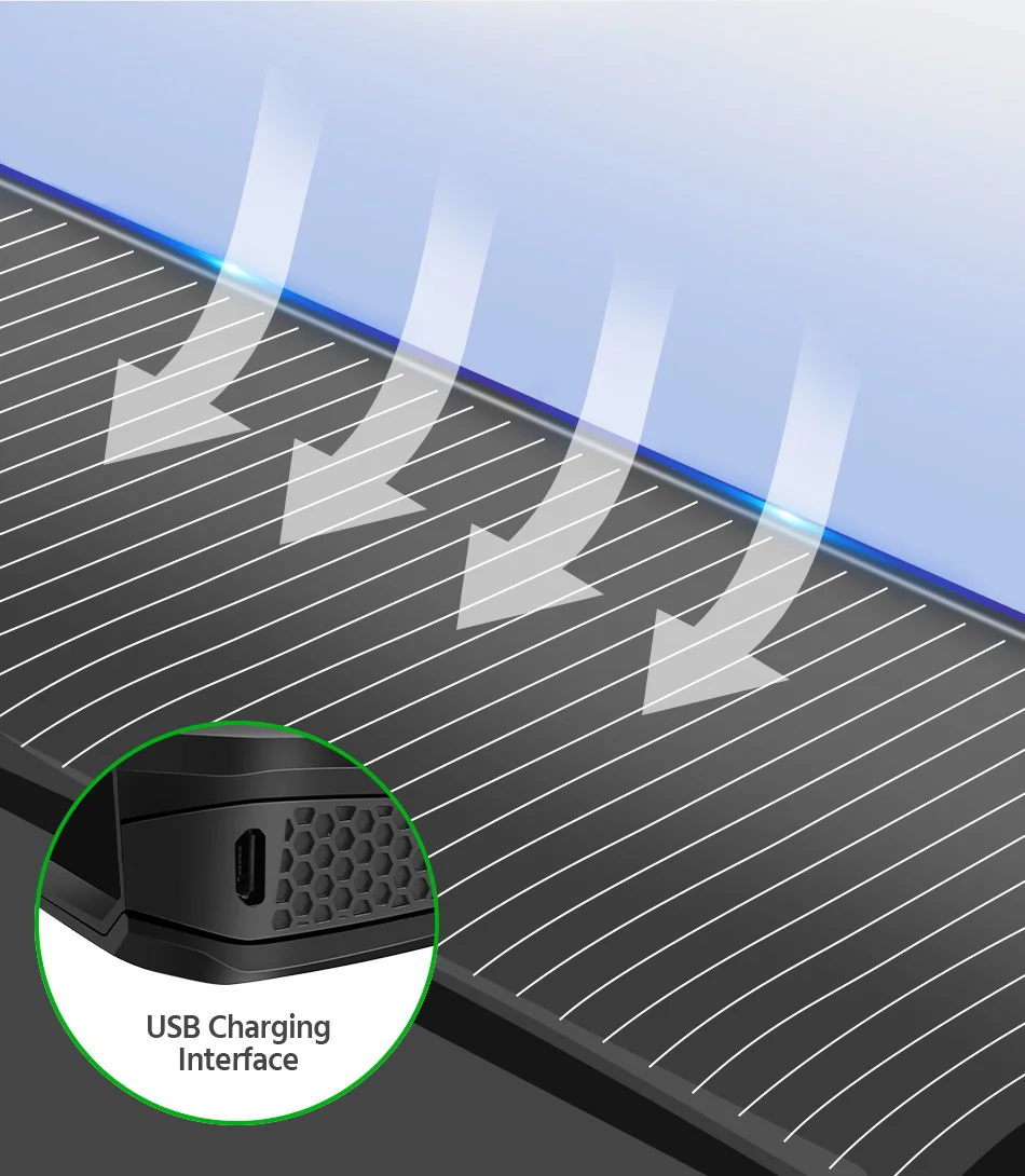 Ежедневное использование высокой солнечной энергии преобразования зарядки, пасмурные дни или подземный гараж слишком долго, может быть USB зарядка.