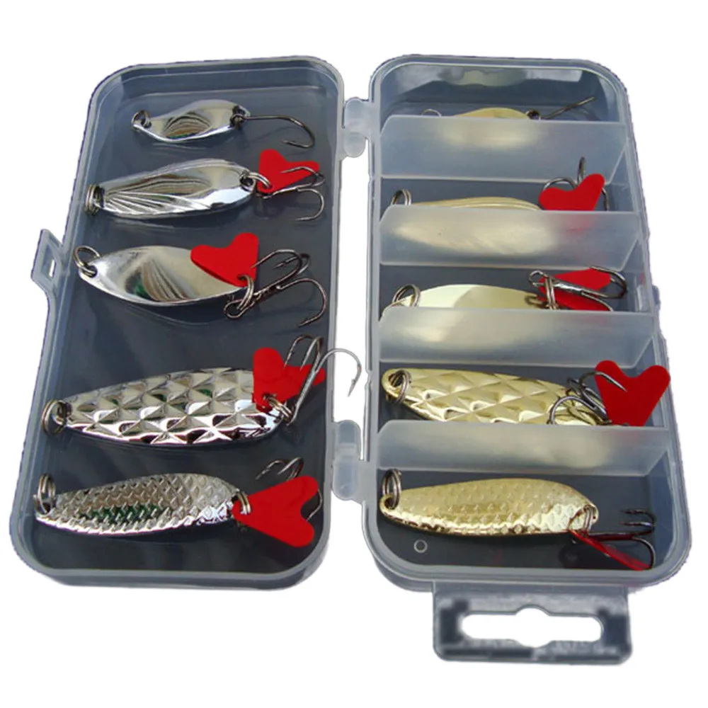 Лот 10 шт Металлические рыболовные приманки Басовая ложка Кривошип приманка для соленой воды снасти Крючки