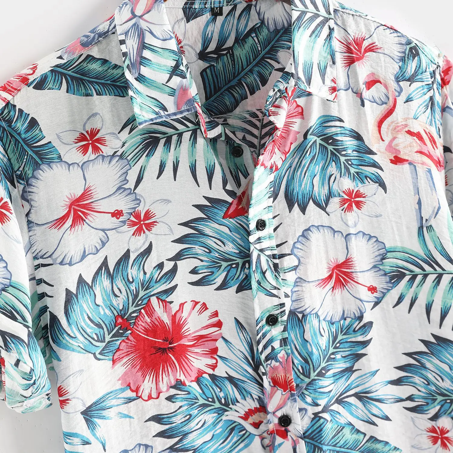 Летние мужские хлопковые рубашки ropa hombre, повседневные тонкие дышащие рубашки с коротким рукавом и цветочным принтом фламинго