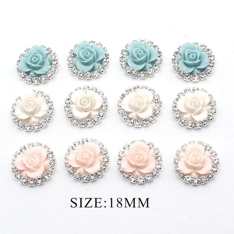 Новинка, 10 шт./лот, 18 мм, розовые пуговицы, прошитая плоская кнопка, блестящее свадебное украшение со стразами, пуговицы, хрустальные аксессуары