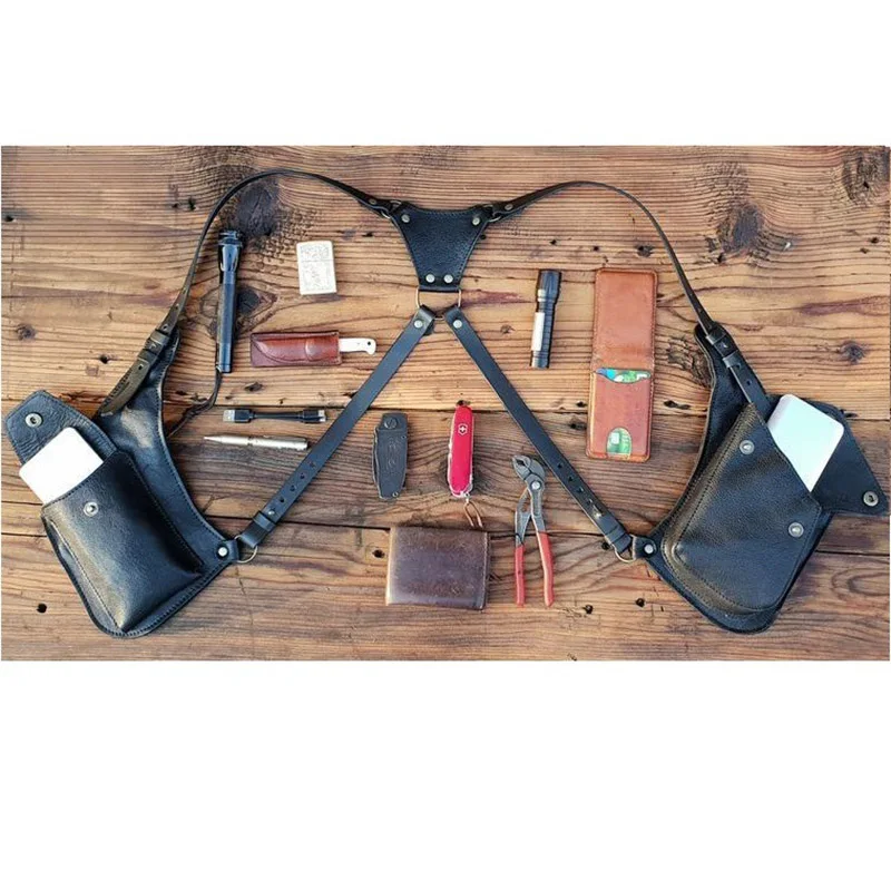 Средневековая кожаная сумка-жилет в стиле стимпанк, винтажный кошелек на плечо для телефона с двойным карманом, кобура, Пиратский Костюм викинга, кошелек для мужчин и женщин