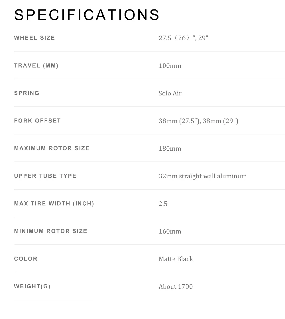 В случае, если вам понадобится 26 дюймов вилка, пожалуйста, выберите модель на 27,5-дюймового one, они совместимы.