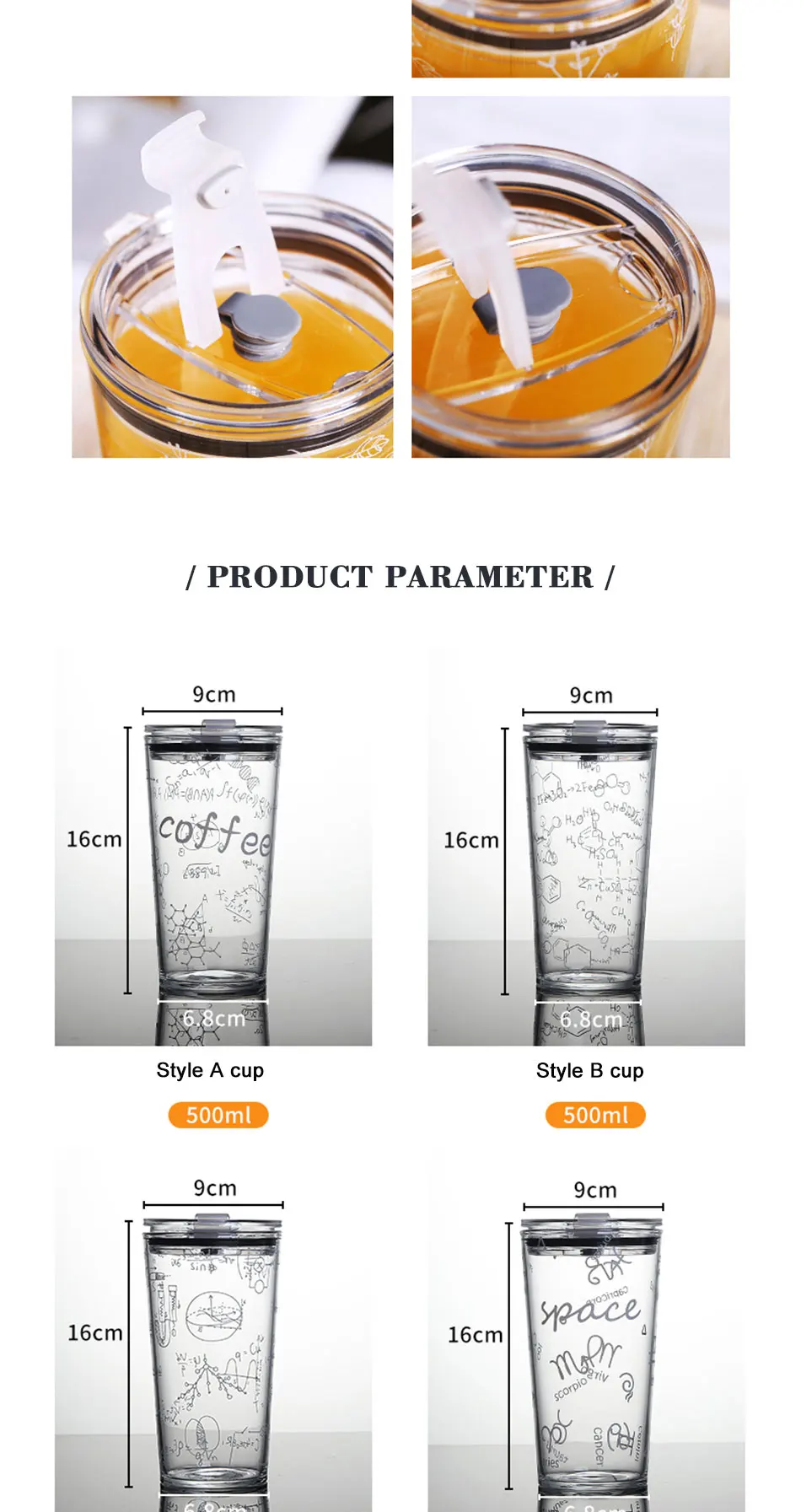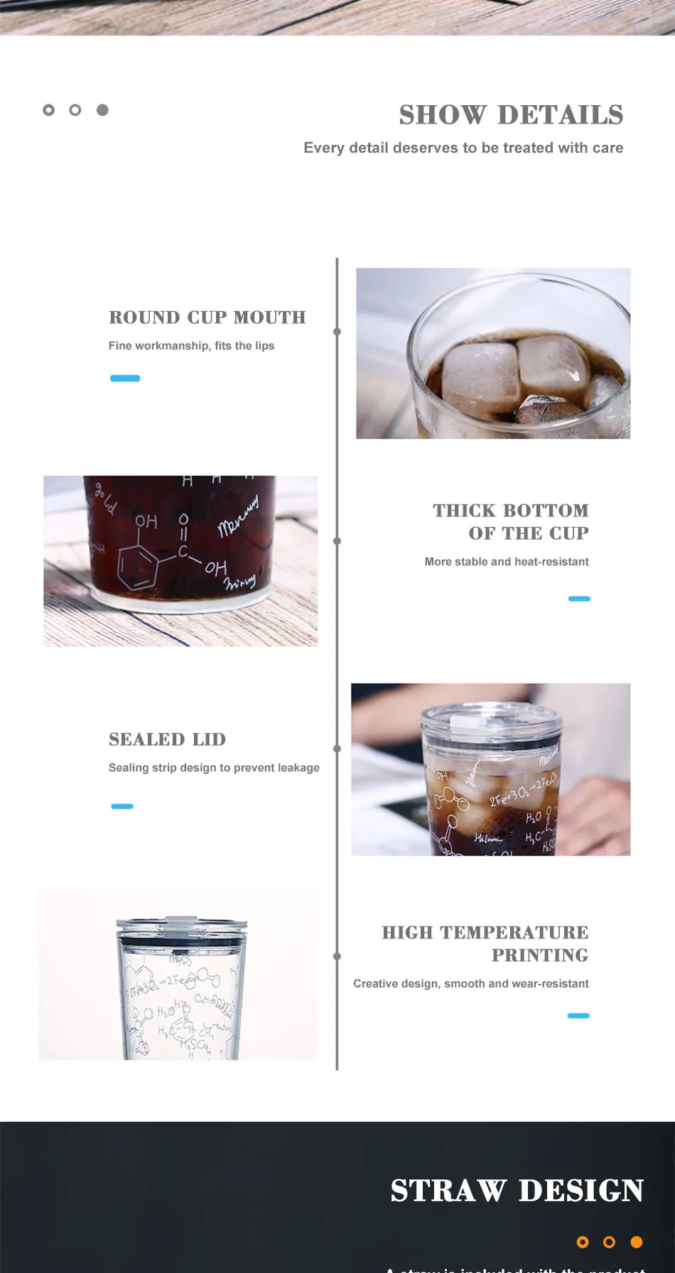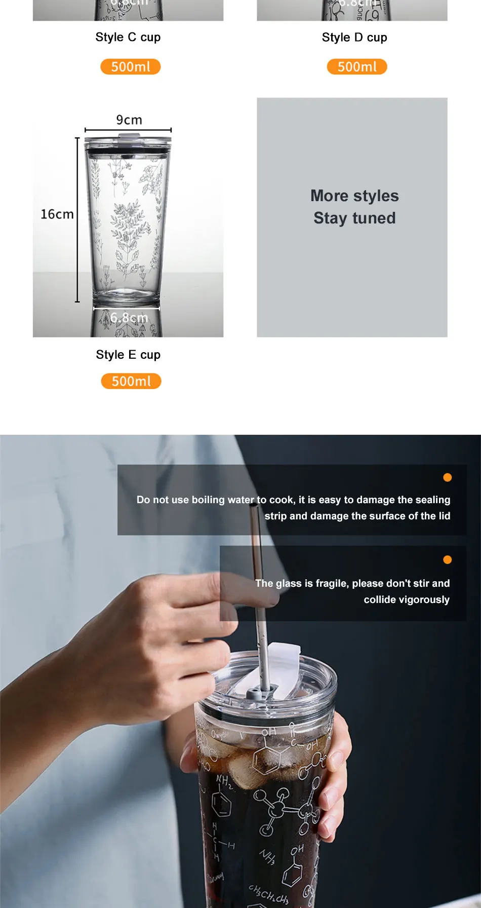 SENDIAN High-temperature Resistant Large-capacity Glass Water Cup With Printing Straw Cup 2021 Office Home Kitchen Accessories