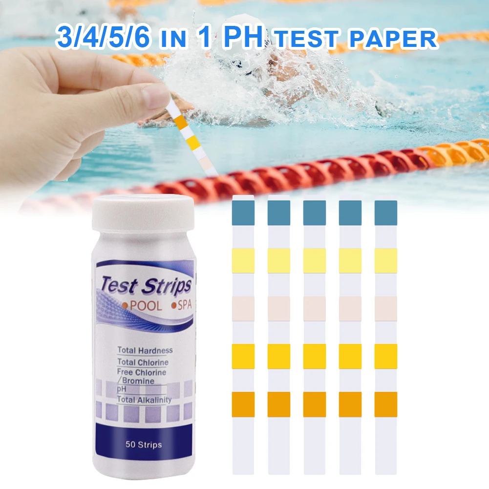 50 шт многоцелевой хлор рН тест-полоски спа плавательный бассейн Водный тест er бумага CLH Щелочность твердость тест-полоски A бутылка