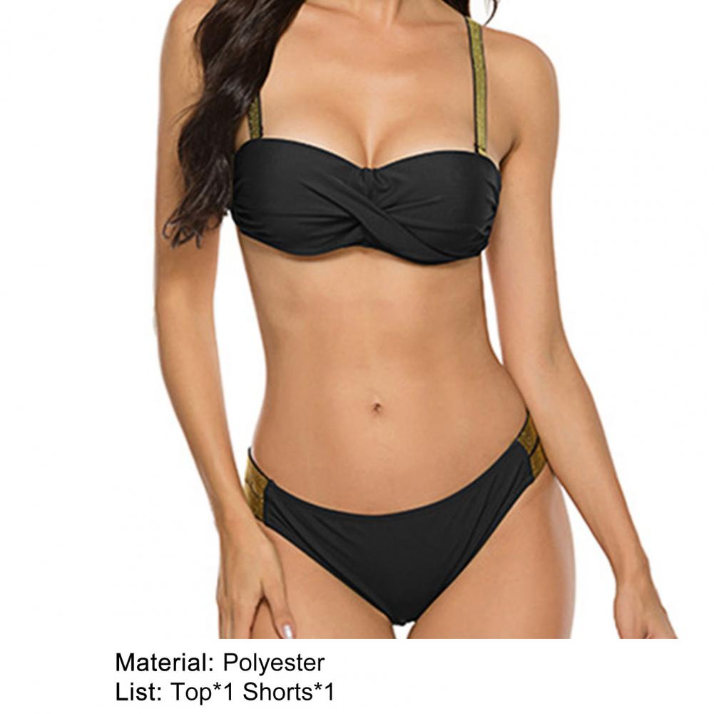 Дизайн с низким вырезом, запахом спереди и бандо делает купальный костюм более шикарным и уникальным, что придает вам привлекательный и сексуальный вид.