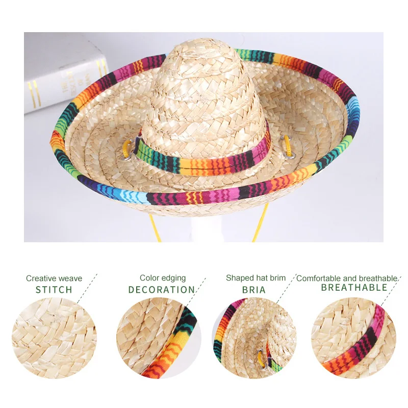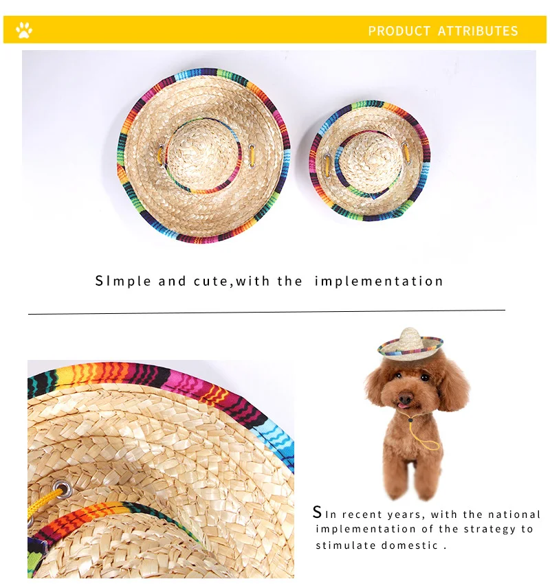 Многоцветная собачья кошка Мексиканская соломенная шляпа-сомбреро для домашних животных Регулируемый костюм с Пряжкой Шляпа в мексиканском стиле для собак аксессуары для костюма кошки
