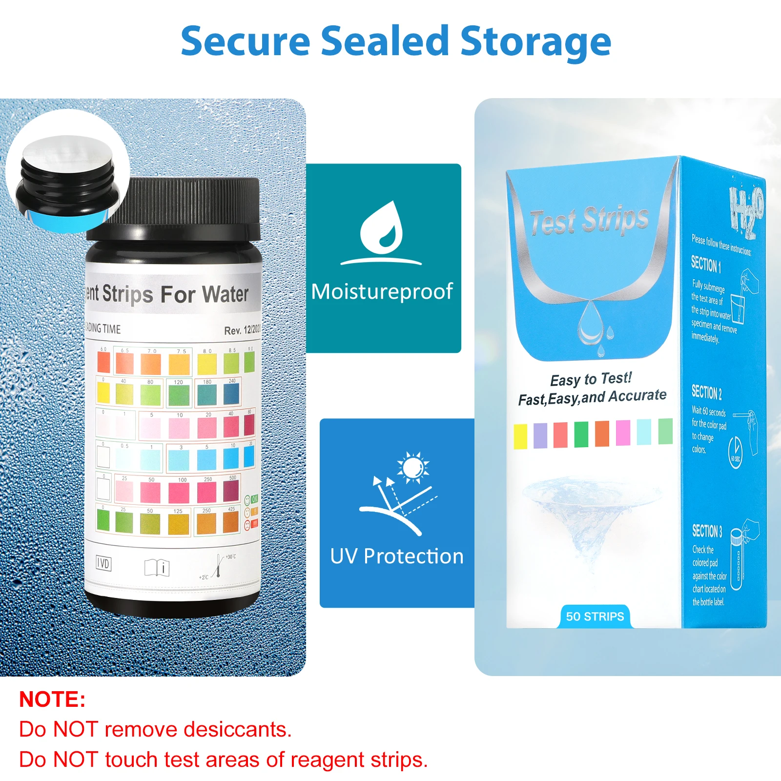 -С помощью тест-полоска, вы можете проверить аквариум или пресноводный морской пруд самостоятельно о pH, общей щелочности, нитрита, свободного хлора, общего хлора и карбонатной твердости. 6 в 1 тест-полоски делают процесс очень простым!