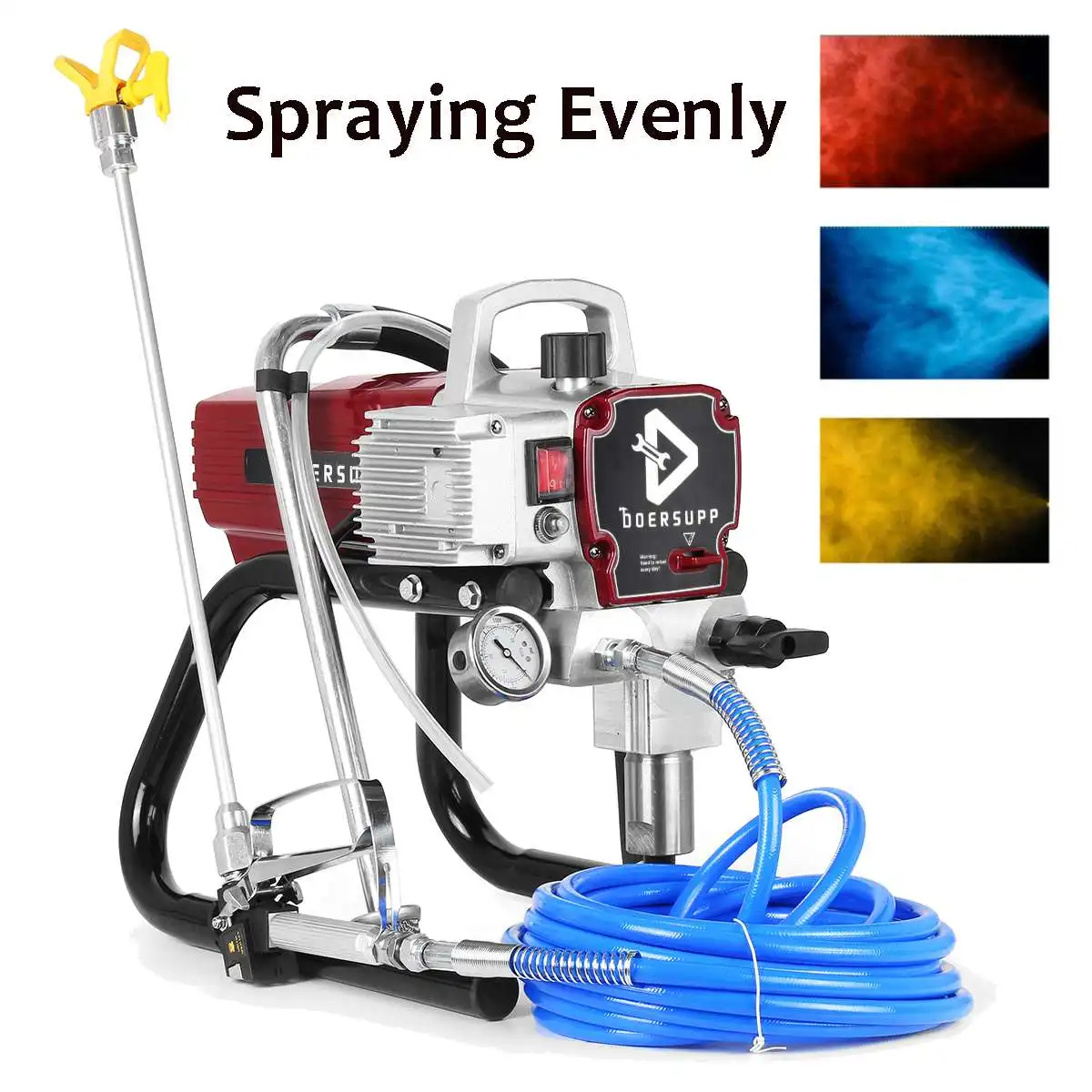 ● Хорошо оснащен: в комплекте краскопульт, фильтр, смазочное масло, трубка высокого давления 11,5 М, удлинитель 50 см, всасывающая трубка материала, манометр