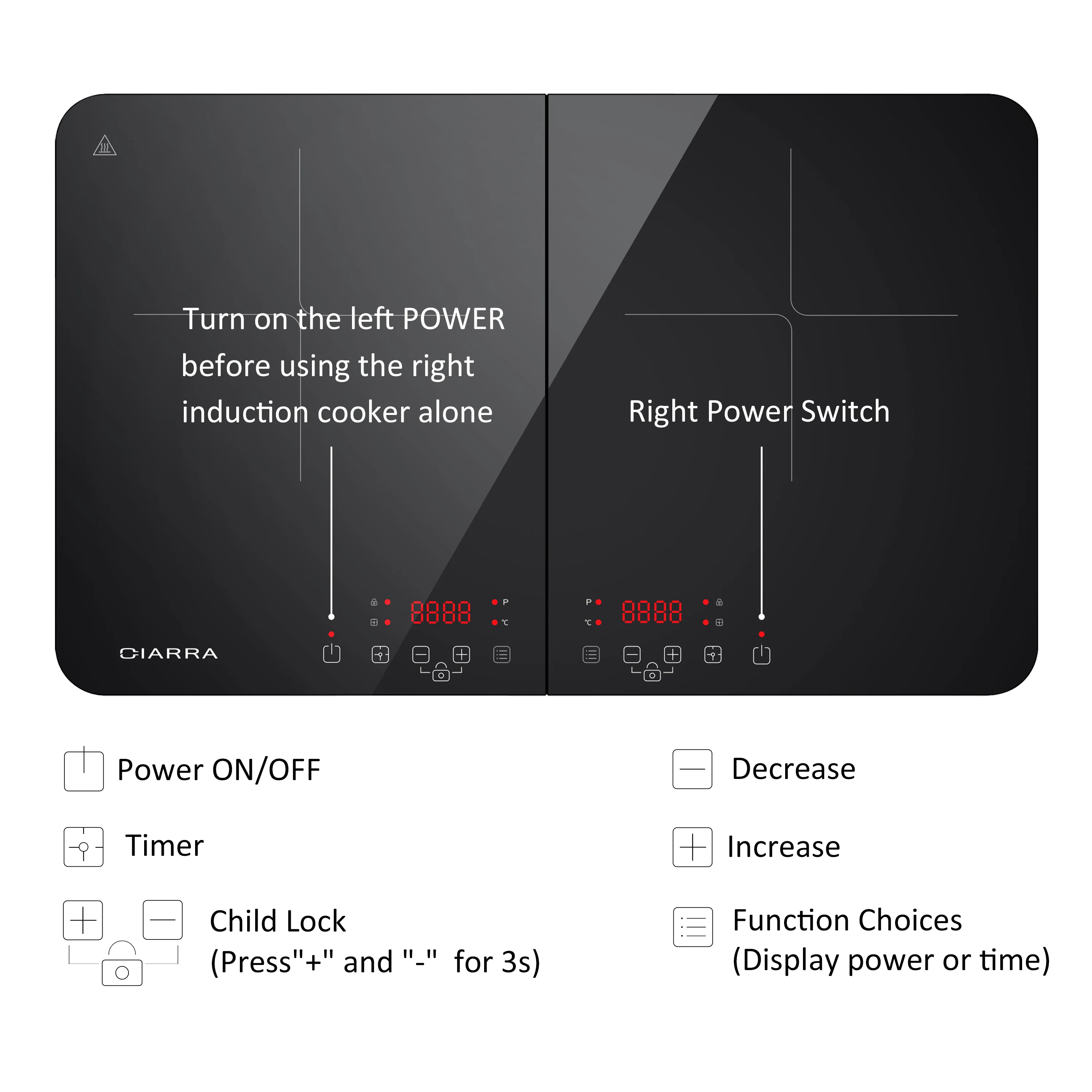 CIARRA CBTIH2 индукционная варочная панель 3500 Вт, сенсорное управление, 9 уровней мощности, таймер с защитным замком. Это искусство приготовления пищи. Каждый раз, когда вы используете индукционную плиту 3500 Вт, она придаст вам фантастические блюда, такие как жарки, супы, горшки, тушеное мясо, жареные стейки, кипяченая вода и т. д. 9 уровней мощности: с нашей индукционной плитой вы можете быстро выбрать желаемую мощность от 200 Вт до 3500 Вт; Готовьте на низком нагреве, быстрый режим приготовления хорошо подходит для приготовления супов, бобов, спагетти, лапша. 10 уровней температуры: Вы также можете регулировать температуру в диапазоне 60 ° C до 240 ° C; С двумя независимыми зонами нагрева, вы можете подготовить два блюда одновременно.