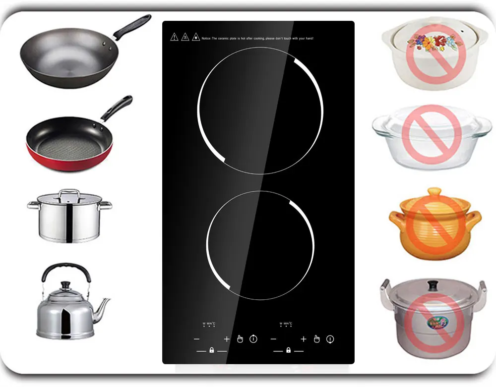 Индукционная плита использует электромагнитную индукцию для нагрева, поэтому необходимо использовать специальные кастрюли для индукционных плит или кастрюли, способные к электромагнитной индукции.
