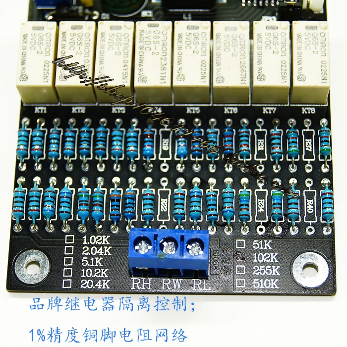 8Two relays(2^8=256)The value of the resistance can be adjusted by changing the isolation on-off。And with