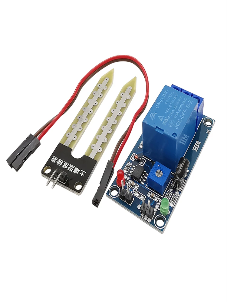 Через потенциометр, регулирующий пороговый контроль влажности почвы, автоматический в саду, автоматический полив сада, контроль влажности почвы в семейном цветочном горшке, все виды электронных игр, с реле высокой мощности, может управлять большим токовым устройством, меньше, чем настройка влажности автоматическое реле запуска, больше, чем настройка влажности автоматическое отключение и задержка функции, Без задержки критического состояния Влажности Реле не останавливает мерцание решение проблемы простая и практичная система контроля влажности почвы.
