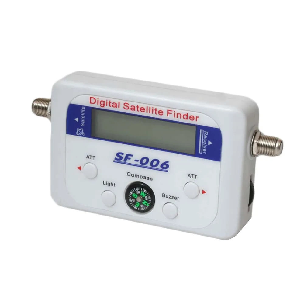 Цифровой спутниковый искатель контролируется микропроцессором, что делает его очень надежным и точным. Сила сигнала представлена графически на ЖК-дисплее в виде градусно-шкалы и в цифрах (0-99). Он также может передавать тональные сигналы (чем выше тон, тем лучше сигнал) на зуммер. Цифровой satfinder очень чувствителен и может обнаруживать самые слабые сигналы, Сильные входящие сигналы (мощный спутниковый, большие тарелки) могут быть легко ослаблены для лучшего считывания.