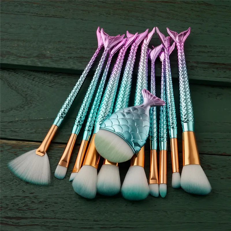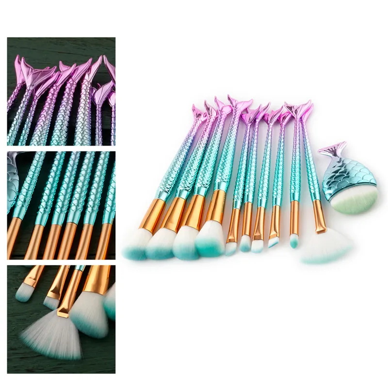 11 шт./компл. кисти для макияжа Красочные Тени для бровей основа для макияжа Румяна консилер Русалка макияж набор кистей для косметики набор