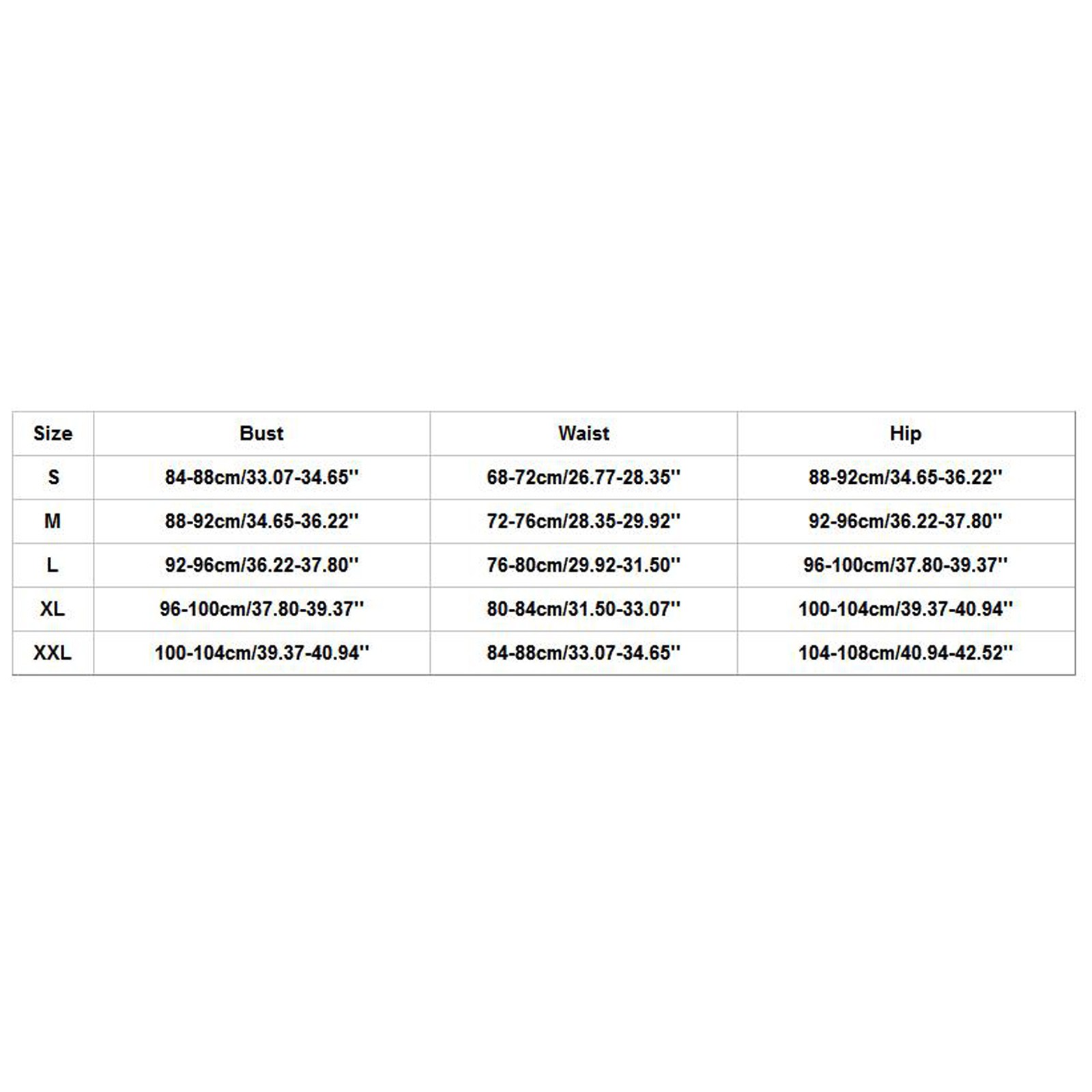 Размеры Бюст Талия Бедра S 84-88 см/33,07-34,65 дюйма 68-72 см/26,77-28,35 дюйма 88-92 см/34,65-36,22 дюйма М 88-92 см/34,65-36,22 дюйма 72-76 см/28,35-29,92 дюйма 92-96 см/36,22-37,80 дюйма L 92-96 см/36,22-37,80 дюйма 76-80 см/29,92-31,50 дюйма 96-100 см/37,80-39,37'' XL 96-100 см/37,80-39,37'' 80-84 см/31,50-33,07 дюйма 100-104 см/39,37-40,94''