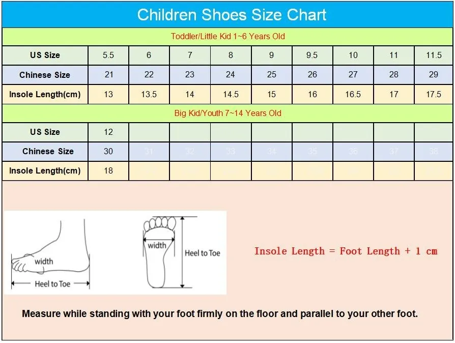 5.Что касается размера, Измерьте длину стопы ребенка в см или дюймах + 1 см или 0,03937 дюймаChВыберите соответствующий американский размер, спасибо