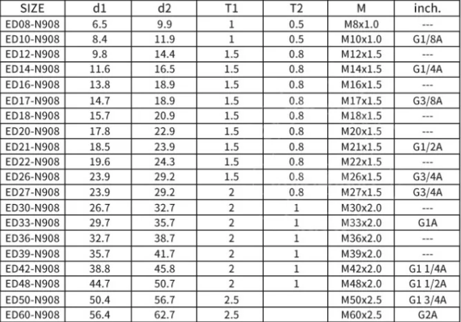 The ED Ring is one of many industrial seals. It is used as a special seal for pneumatic and hydraulic joints such as pipe joints, hydraulic plugs and filter joints. Better seal than traditional O-rings. The elastomer seals are used as axial static seals for threaded oil ports and screw ends. The cross sections remain almost constant at high pressures.
