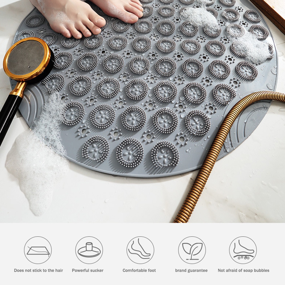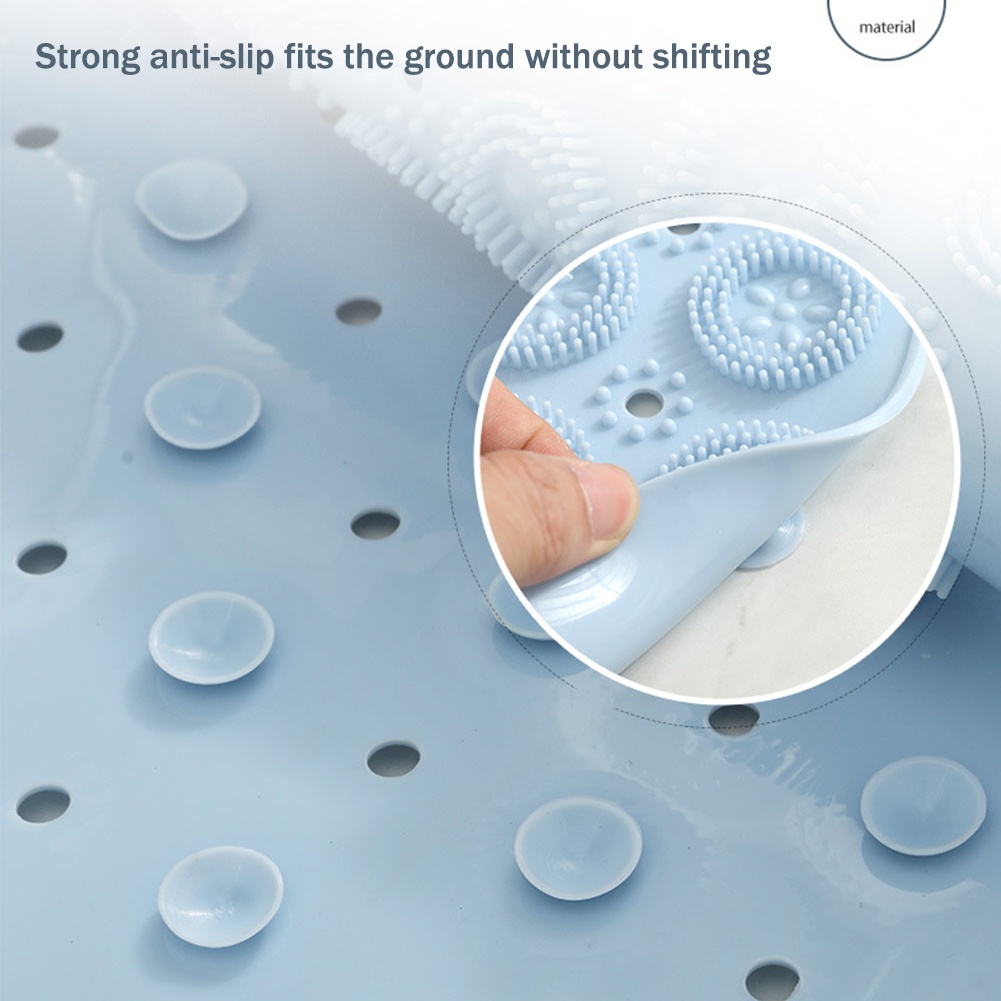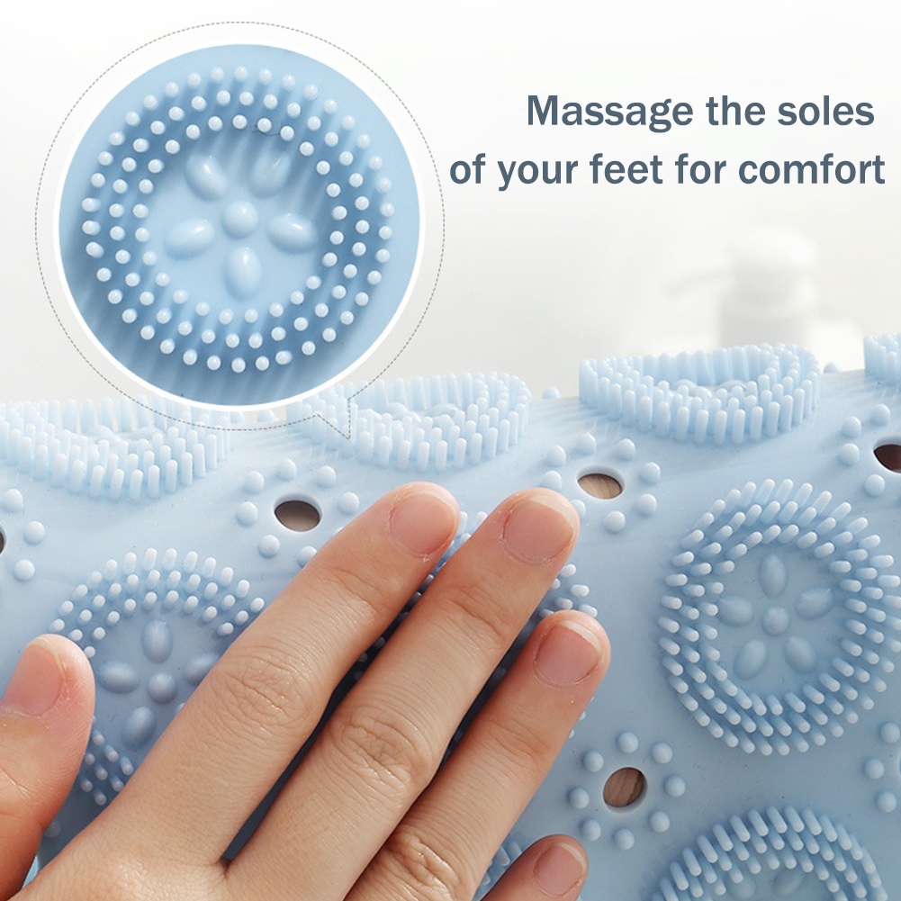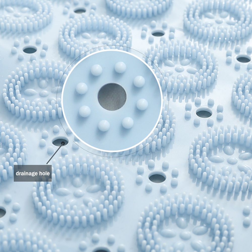 [Нескользящий и мягкий] устойчивый коврик для душа покрыт круговым нескользящим кольцом спереди и присоской внизу, поэтому он может плотно удерживать пол. Нескользящий коврик для ванной также имеет функцию массажа, позволяя вам наслаждаться массажем ног во время принятия ванны, что помогает кровообращению тела, И очень подходит для детей и пожилых людей.