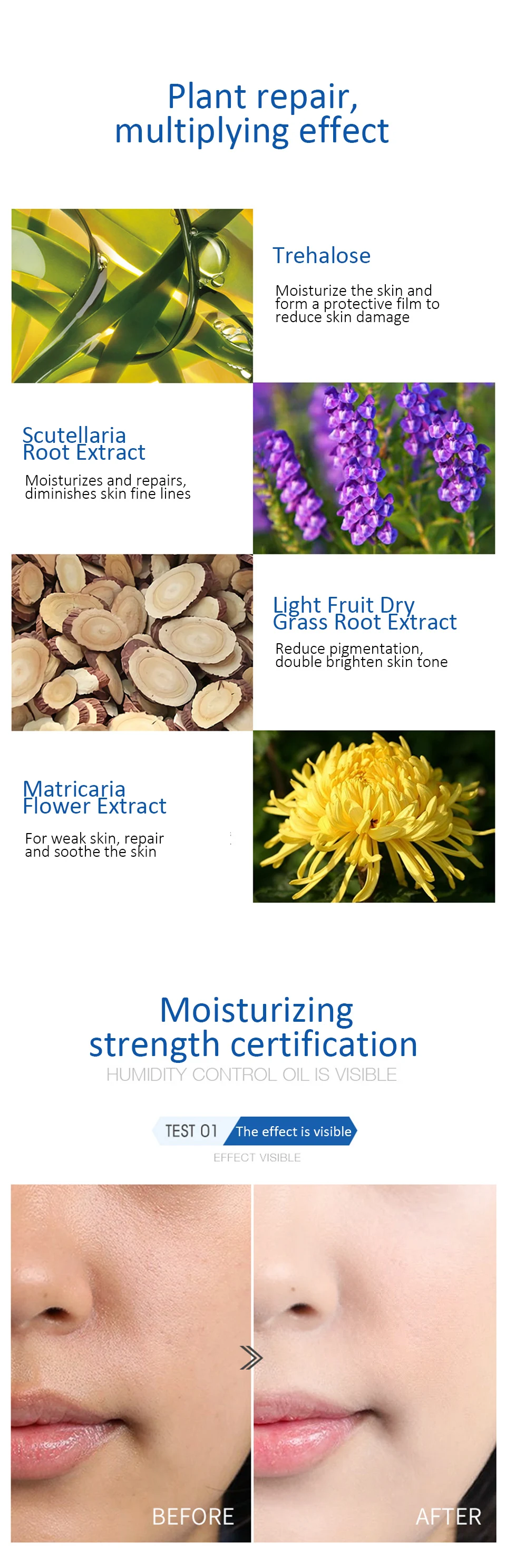 [Основные компоненты]: вода, бутандиол, соевая аминокислота, пальмитоил hexapeptide-12trehalose, солодовый олигосахарид, гиалуронат натрия, паеония suffruticosa экстракт корня, сорбат калия, гидобензоат [Эффективность продукта]: Каждая капля эссенции snoothes, омолаживает вашу кожу и усиливает ваши кожные барьеры, продукт содержит наиболее эффективное увлажняющее средство и помогает пополнять влагу кожи и помогает влажный сухой и грубой коже, омолаживать, увлажнять, питать и поднимать кожу, делая ее упругой [Типы кожи]: подходит для различных типов кожи [Характеристики]: 0,5 унций (15 мл) [Использование]: А. После очистки нанесите соответствующее количество продукта в центре ладони B. Равномерно нанесите раствор на лицо, похлопывая C. Полностью погладьте Каждый участок лица, чтобы помочь ему впитать