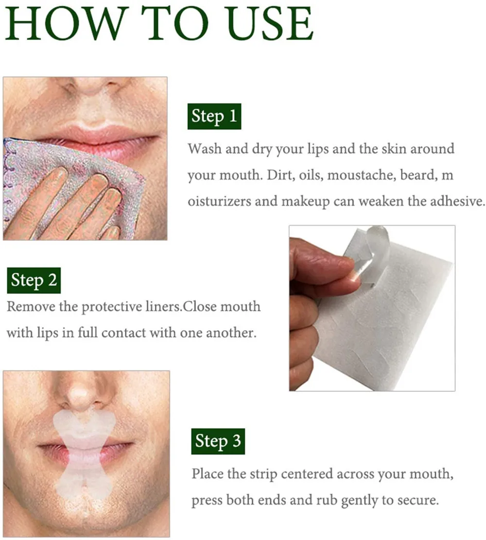 Изготовлен из растительного клея, не вредит коже, экстремальная эластичность закроет губы, легко прекратит храп, улучшит сон.