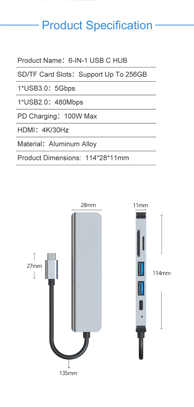 1. Название продукта: 6-в-1 USB-C концентратор