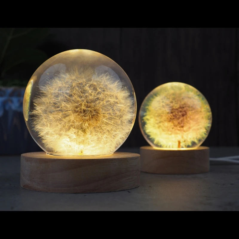 Хрустальный шар, светодиодные ночники, эпоксидная смола, форма для украшения дома, силиконовая форма, деревянная светодиодная подсветка, основа, сушеный цветок одуванчика