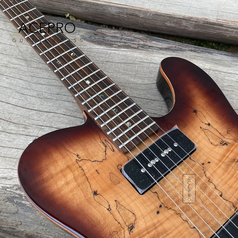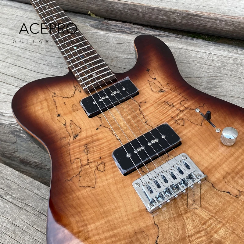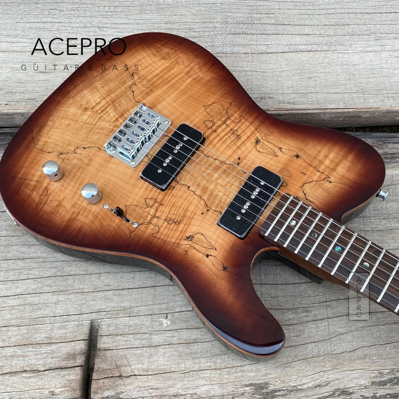 ACEPRO коричневый взрыв Spalted клен Топ электрогитара, 2 P90 пикапы, жареный клен шеи, Абалон точки вставки, хромовое оборудование, китайская гитара