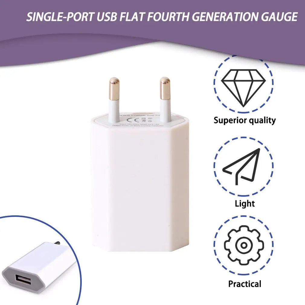 Особенности: 1. Отличная производительность: общий выходной ток USB составляет 5 В/1 А, а вход-100-240 В, что позволяет заряжать мобильные устройства одновременно на высокой скорости, что действительно экономит время. 2. Гарантия безопасности: настенное зарядное устройство USB имеет систему защиты для предотвращения перезарядки, перегрузки по току и перегрева. После полной зарядки зарядное устройство автоматически прекратит зарядку для максимальной защиты вашего устройства. 3. Легкий вес: Адаптер для домашнего зарядного устройства можно подключить к домашнему или офисному устройству через usb-кабель для зарядки. Просто подключите usb-кабель и подключите адаптер к стене. Компактный, легкий, портативный, стильный и простой в хранении. 4. Многофункциональность: подходит для всех usb-кабелей или мобильных телефонов. Вы можете поделиться с вашим любовником, семьей или друзьями. Укрепляет отношения. Описание: Он может соответствовать всем USB кабелям или мобильным телефонам. Вы можете поделиться с вашим любовником, семьей или друзьями. Укрепляет отношения. Характеристики: