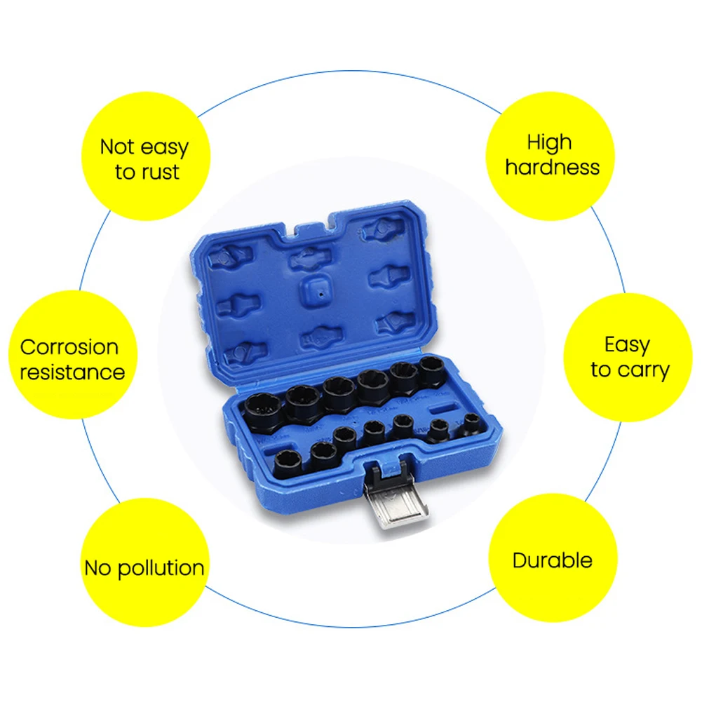 Поврежденная Гайка Болт экстрактор подходит для головки размером 1/4, 5/16, 3/8, 10, 7/16, 12, 1/2, 103, 9/16, 5/8, 17, 11/16, 3/4.