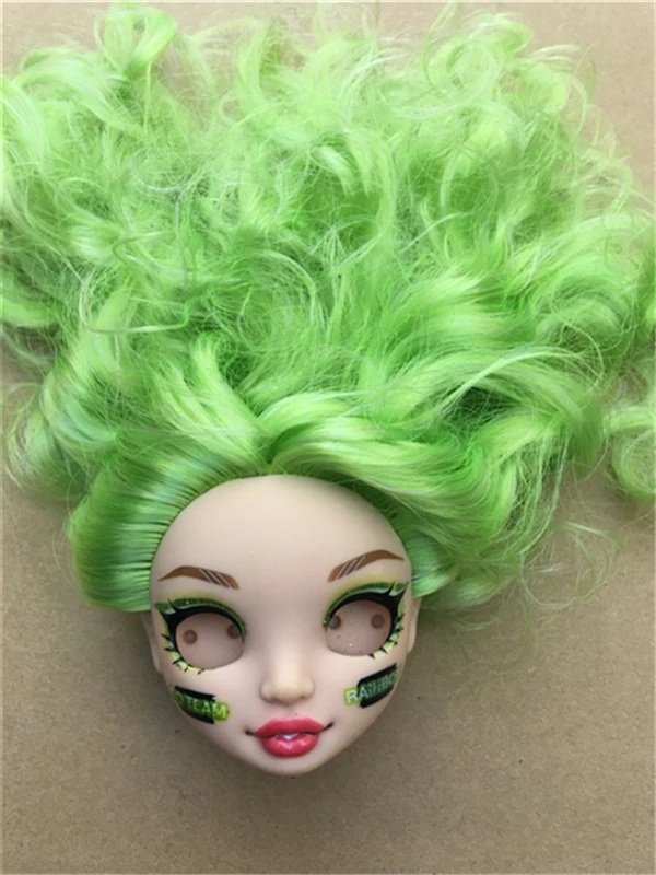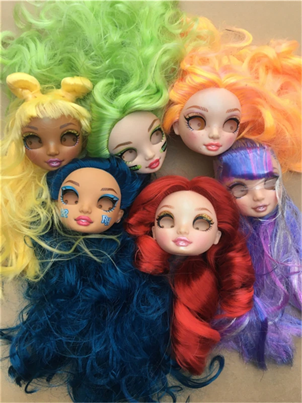 Original Big Eyes Colorful Hair Doll Head Purple Green Orange Blue Yellow Hair Doll Heads Joints Movable Yoga White Doll Body