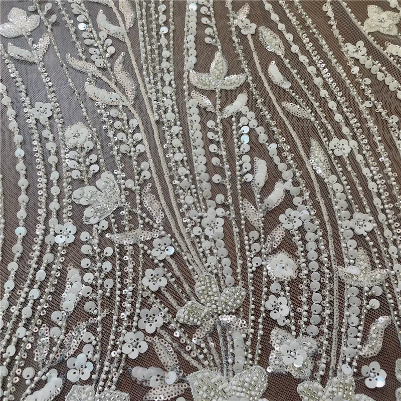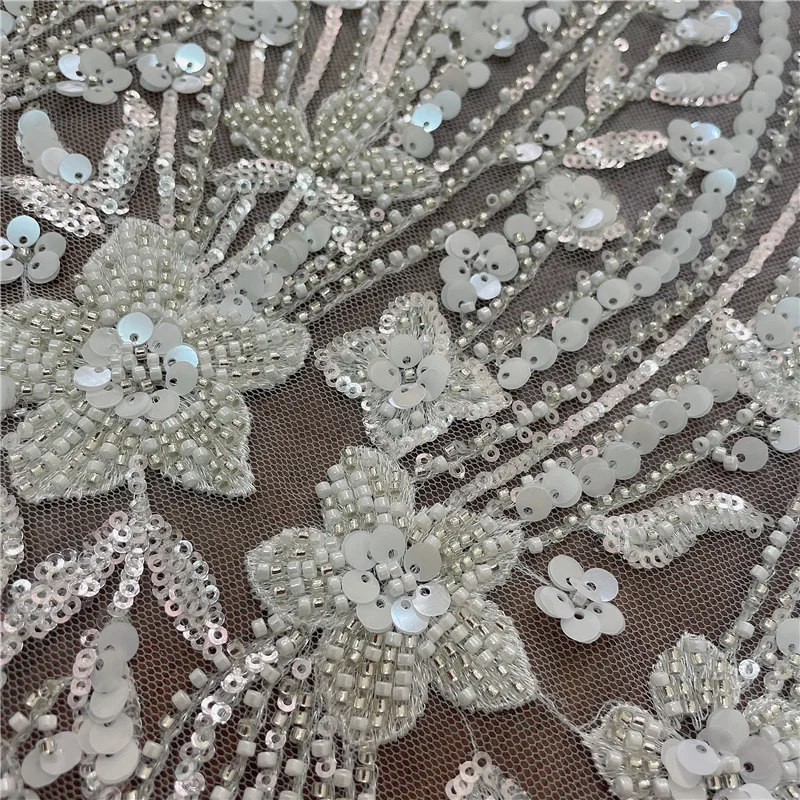 2021 New White Super Luxury Wedding Dress Gown Dress Lace Fabric Heavy Bead Embroidery Mesh Lace Fabric