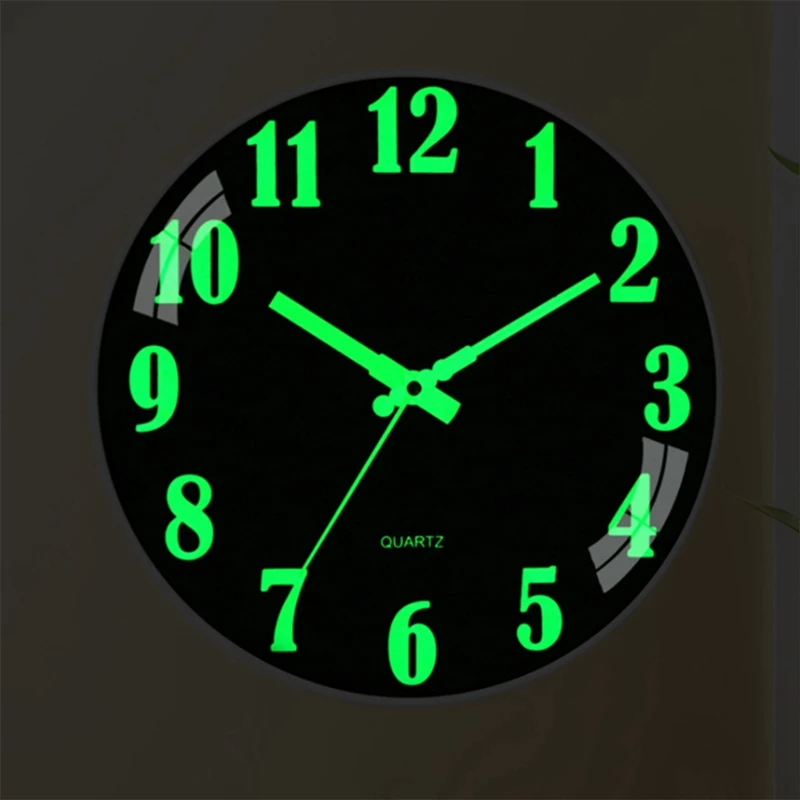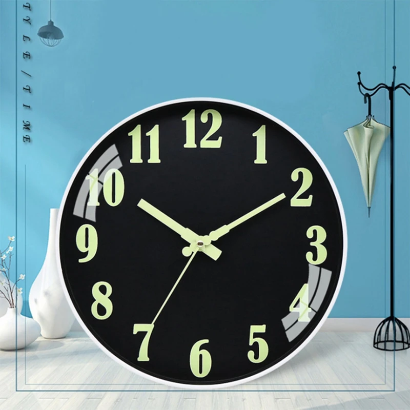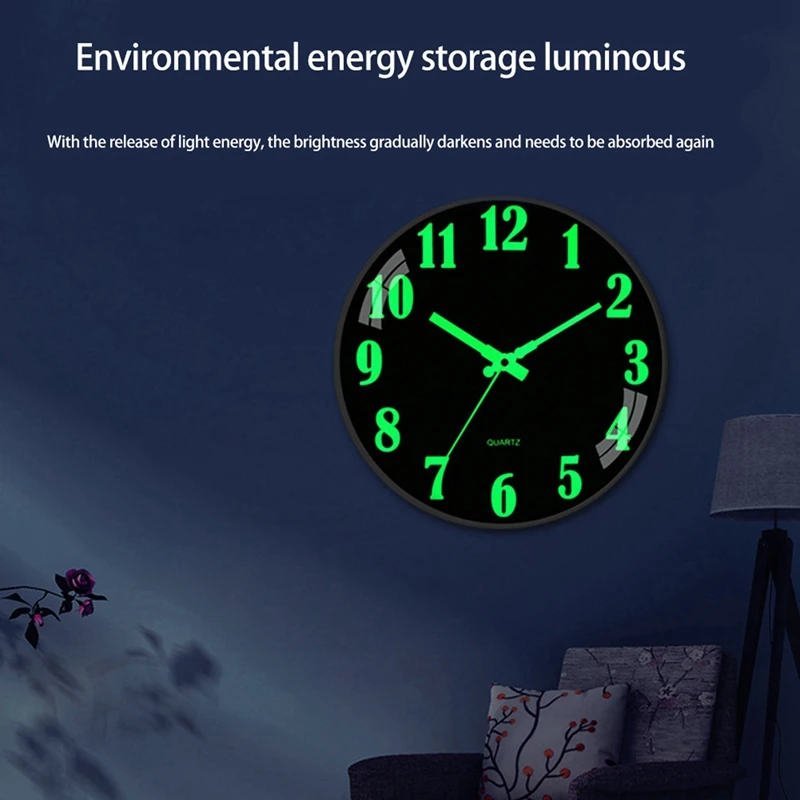 Функция ночной Светильник: настенные часы могут поглощать светильник днем и светиться ночью. Не нужно включать светильник, чтобы видеть время ночью.