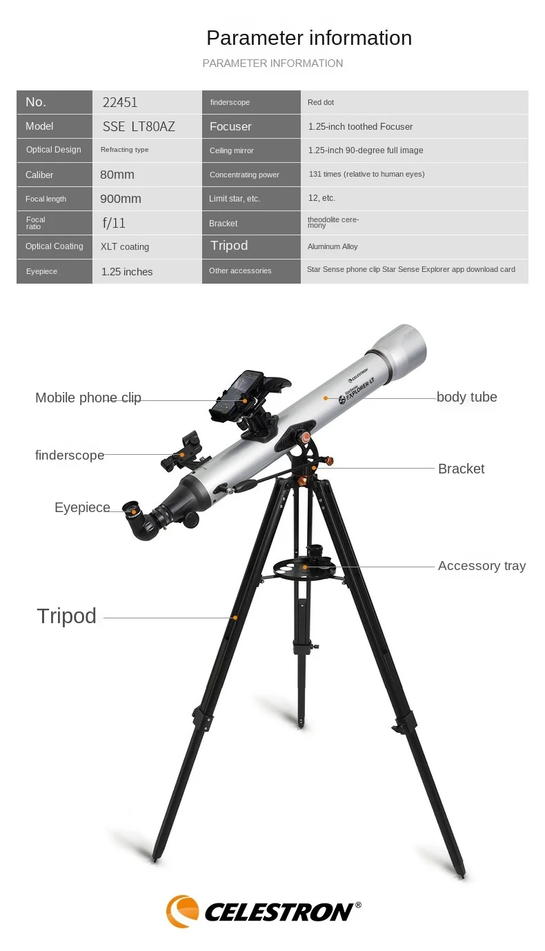 Starsense проводник™LT80AZ смартфон с поддержкой приложения рефрактор телескоп