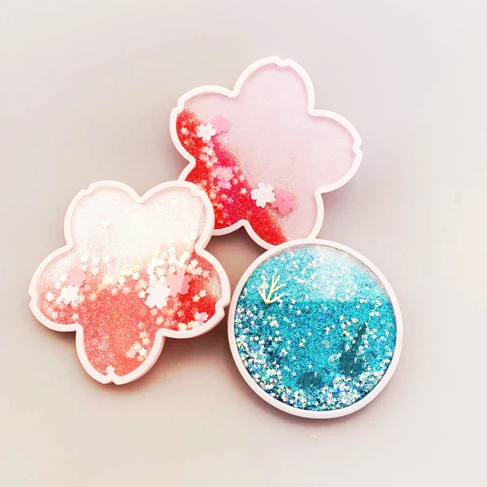 1.Flow coaster:Our sakura coaster for drinks have shiny quicksand glitter in coaster. You can shake it and the quicksand will flow slowly and glitting in coaster. There are cartoon sakura coasters, ocean and rainbow coasters for selection.1* coaster