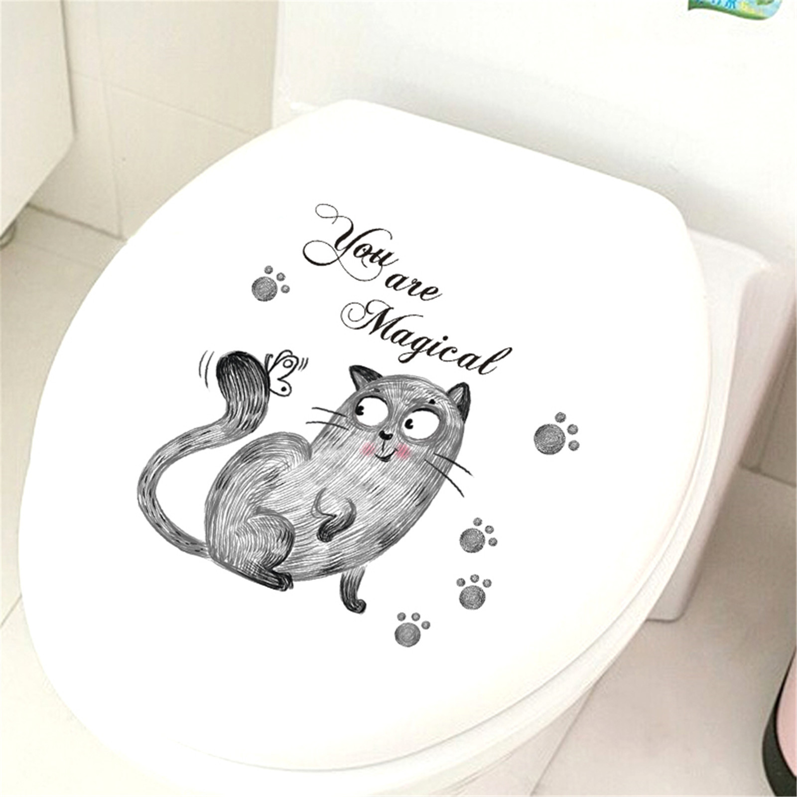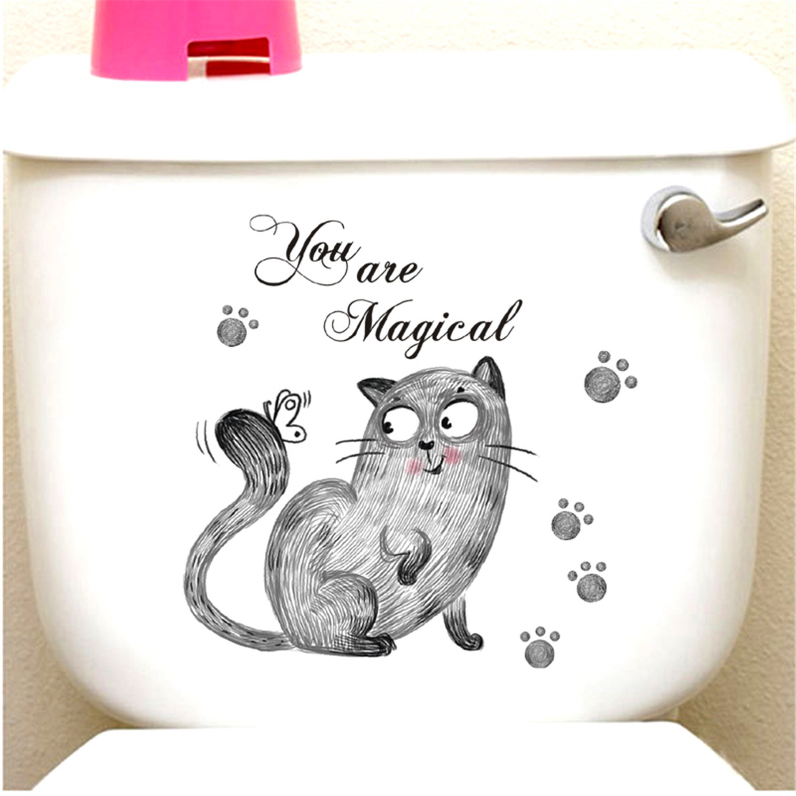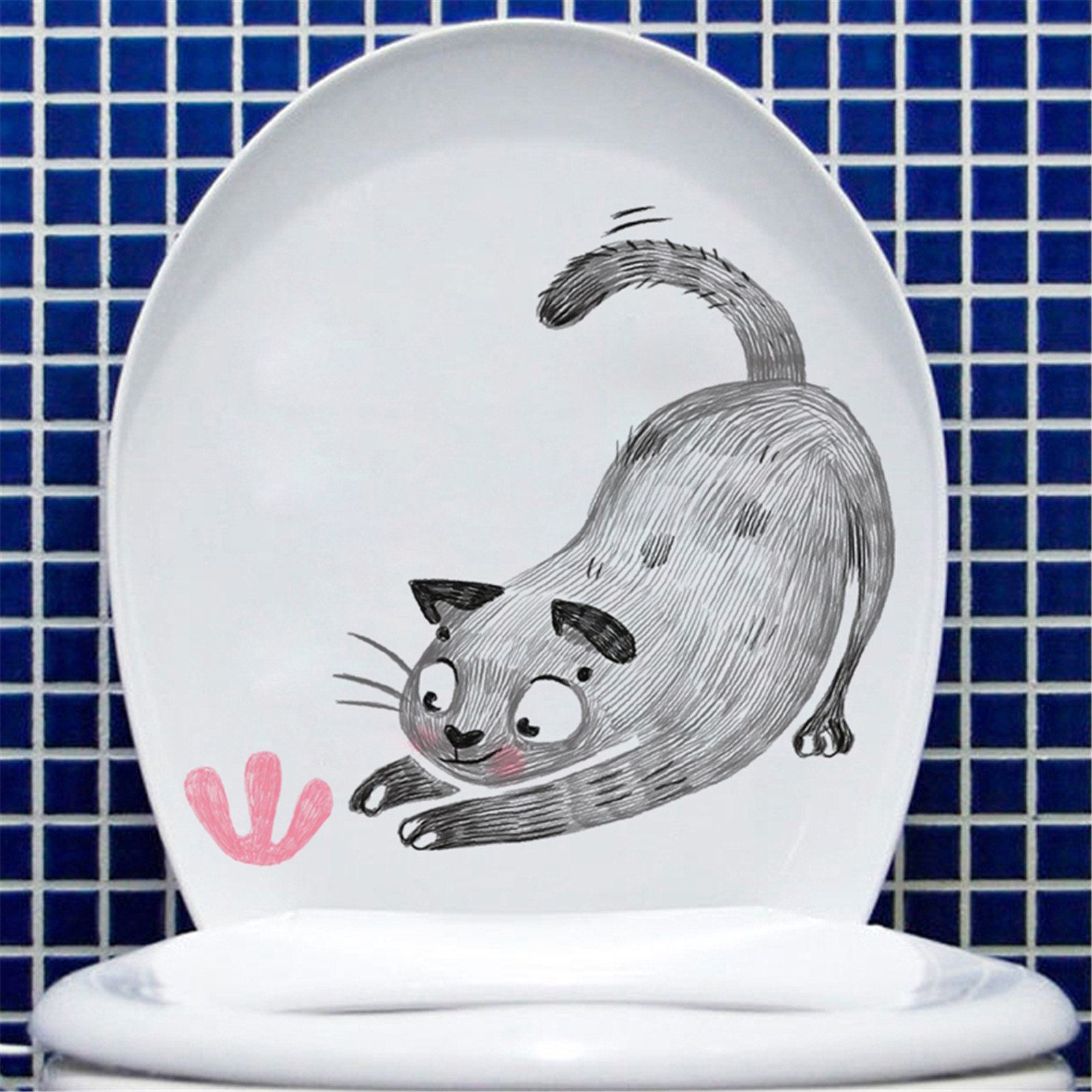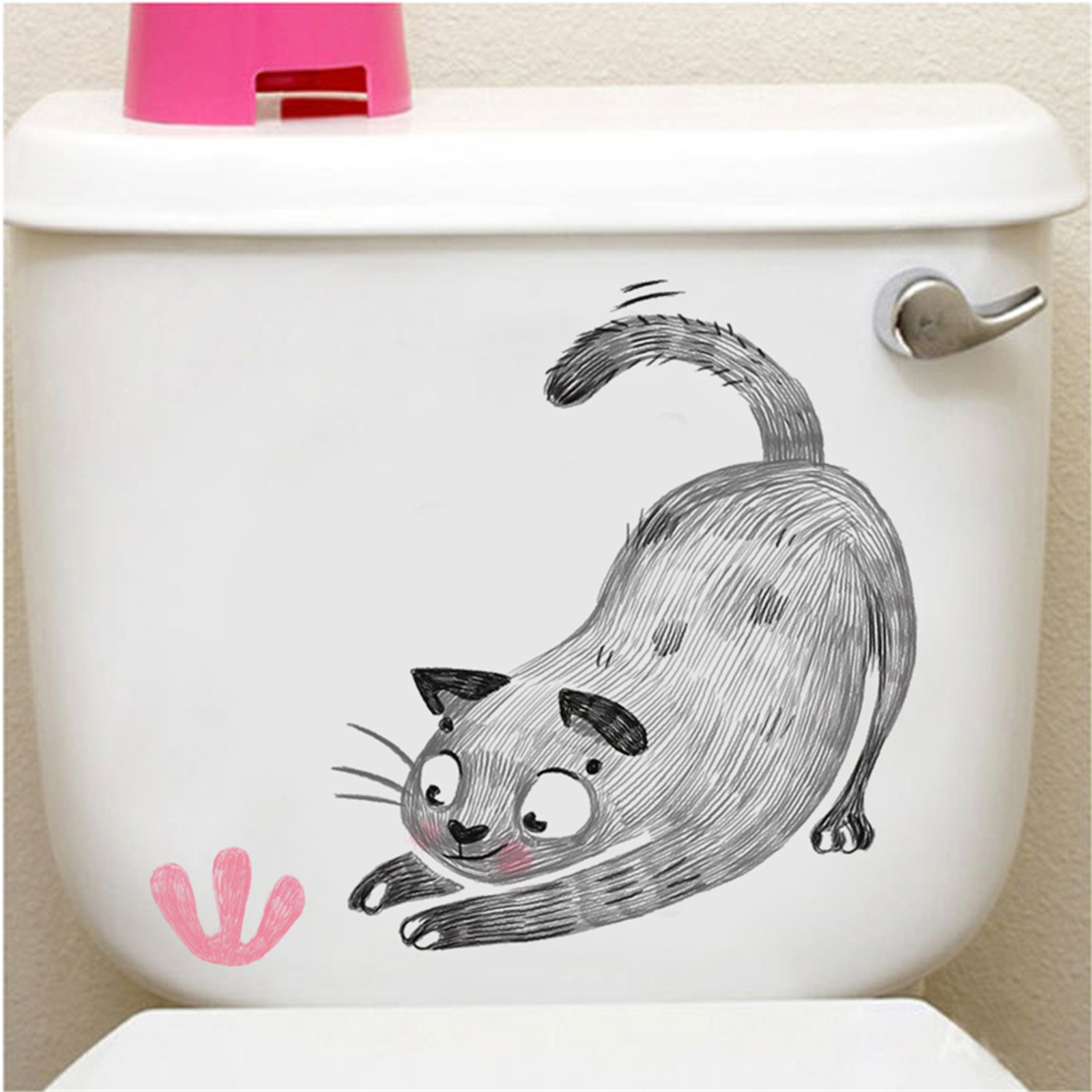 Милый Кот туалетный стикер s ПВХ стикер на стену украшение для гостиной