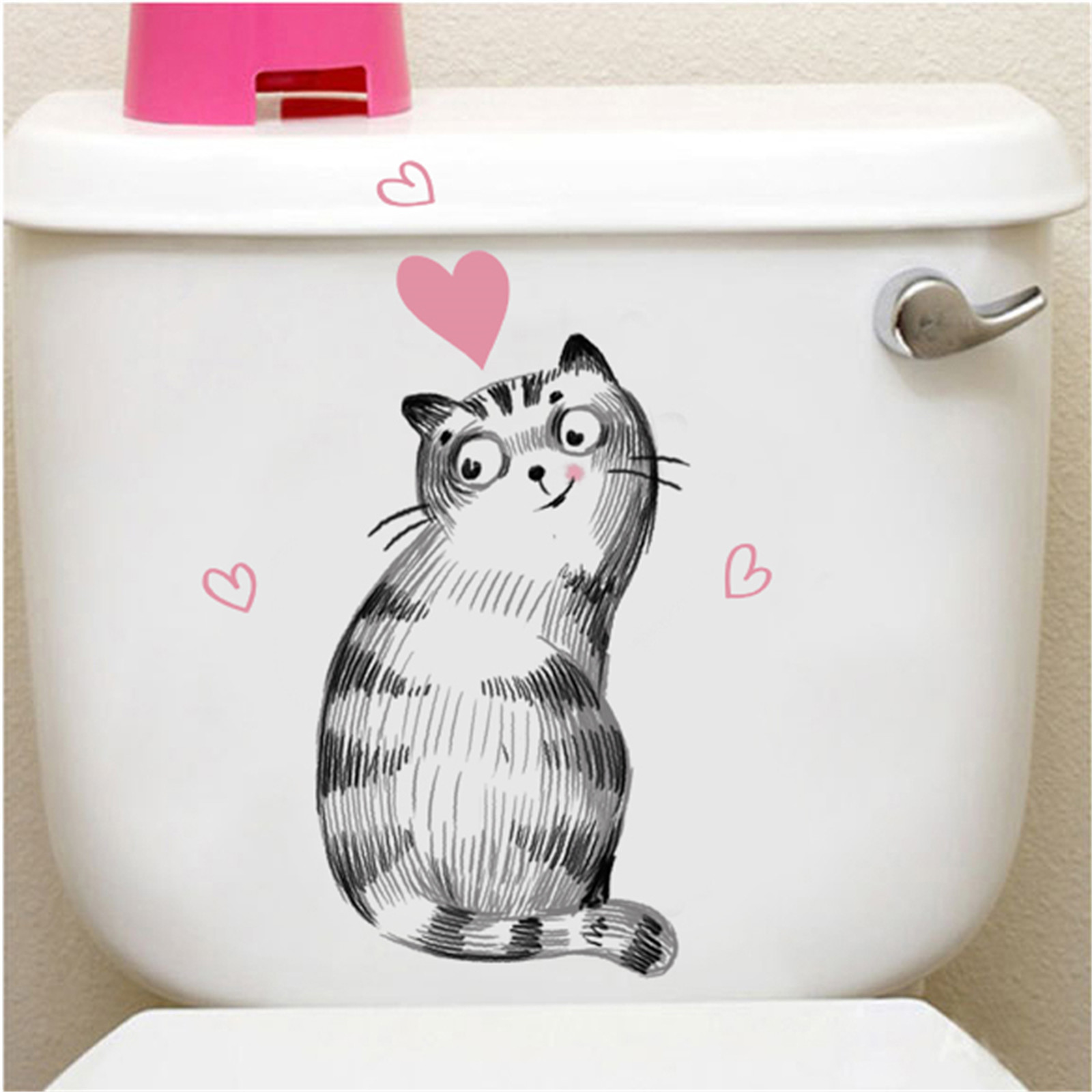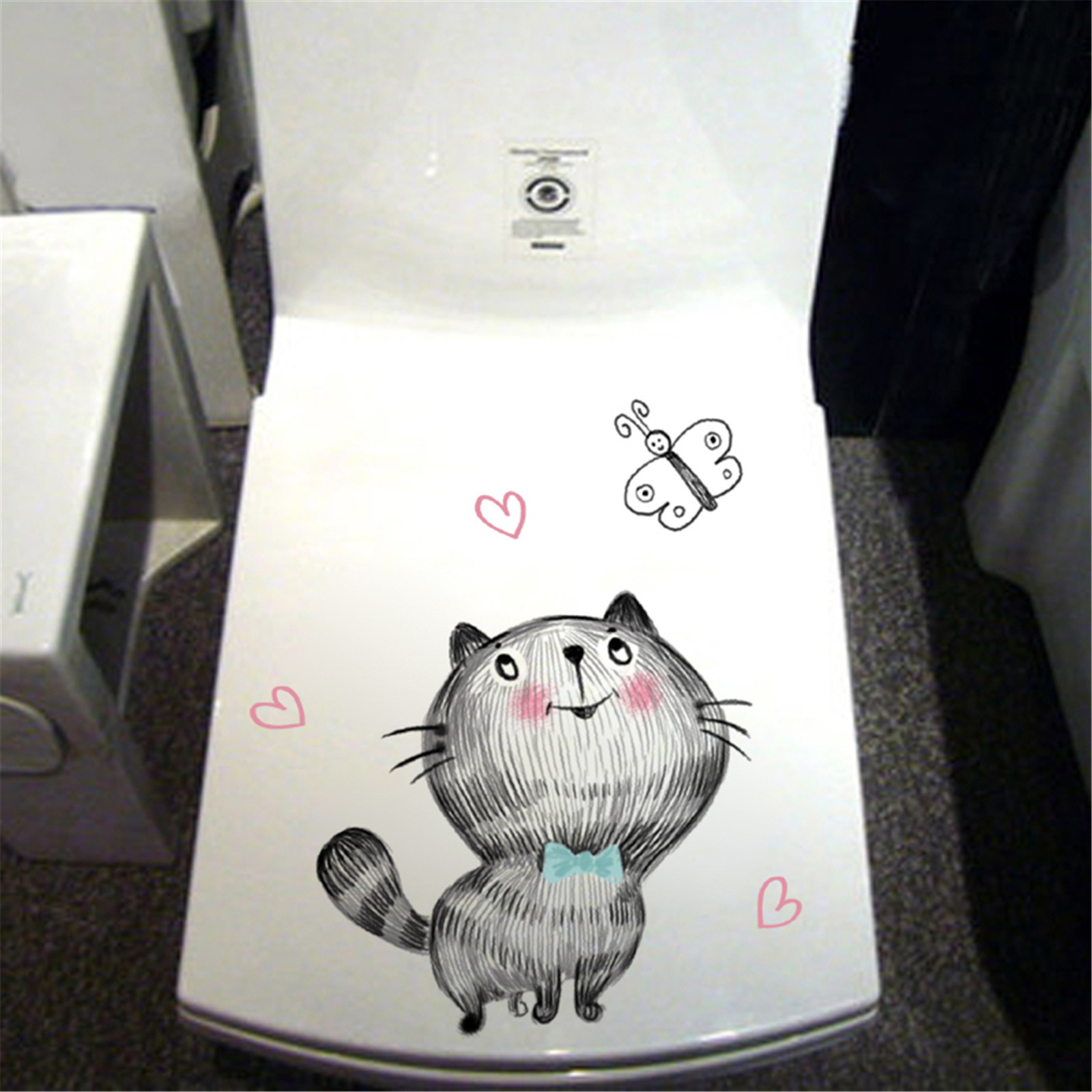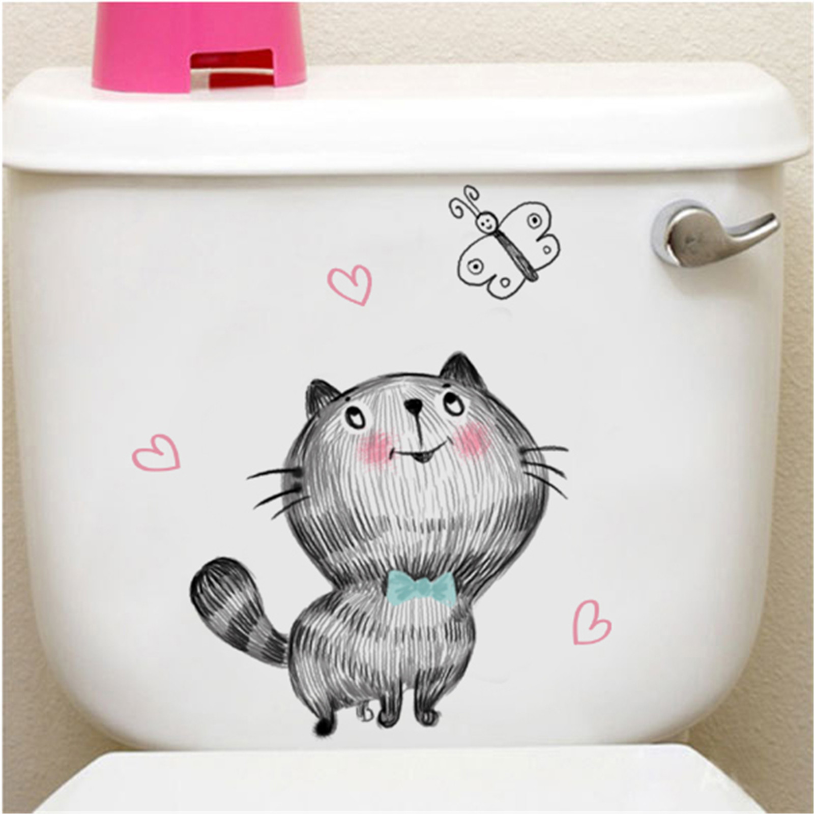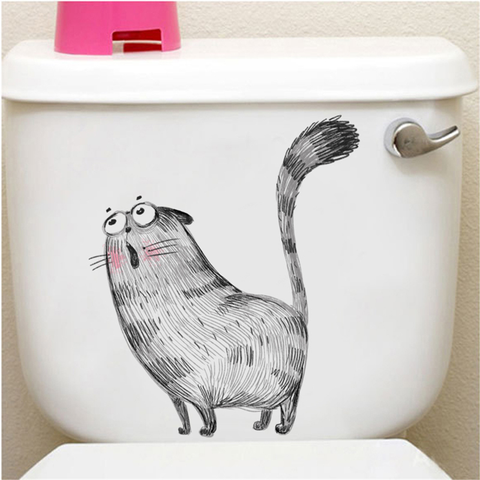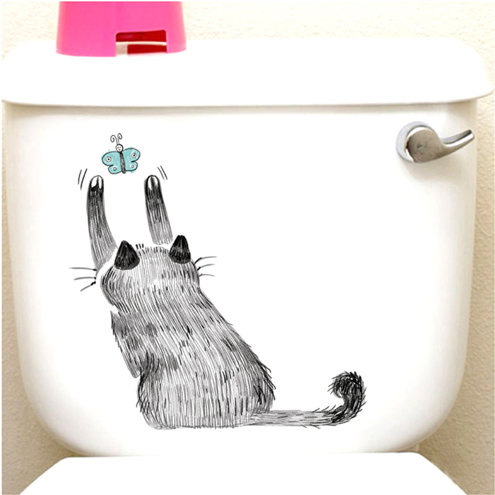 Милый Кот туалетный стикер s ПВХ стикер на стену украшение для гостиной