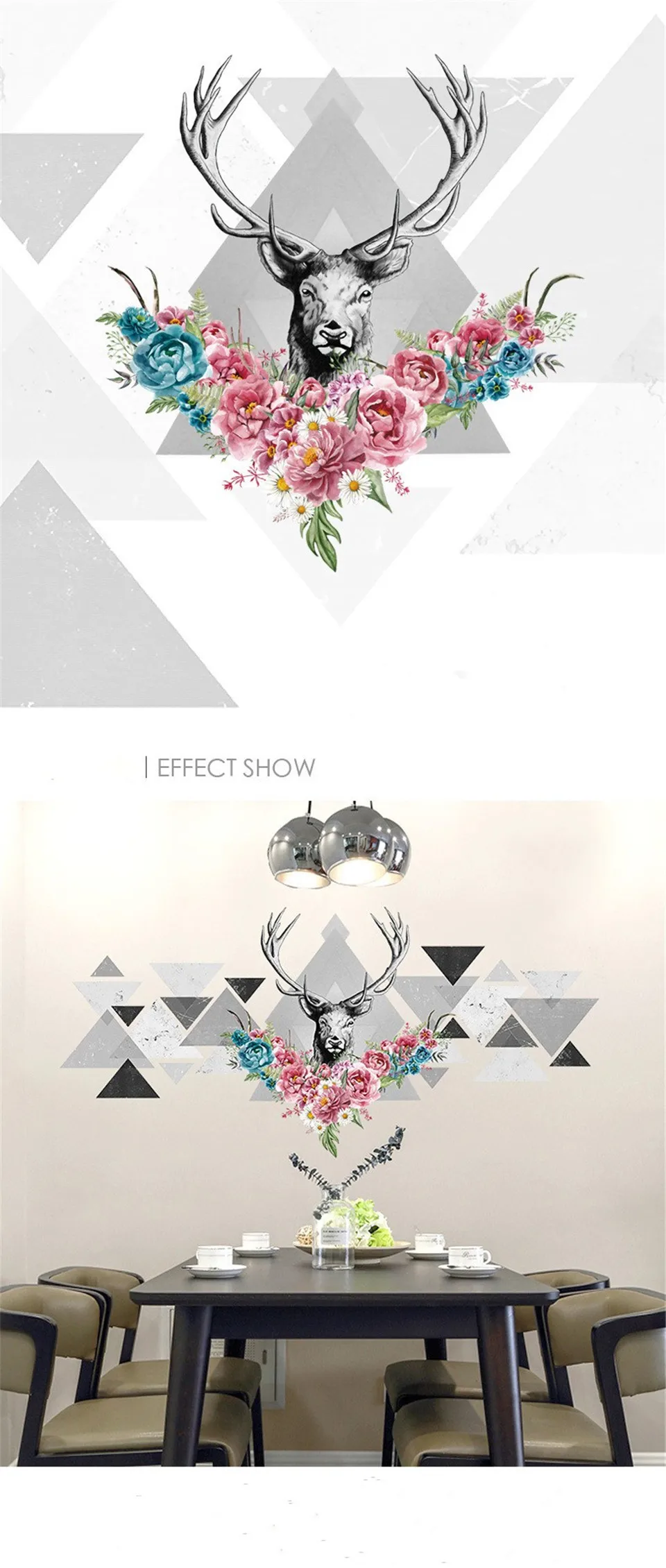 Скандинавские геометрические наклейки на стену с головой оленя, для спальни, гостиной, столовой, телевизора, фона, Настенный декор, домашние декоративные обои «сделай сам»