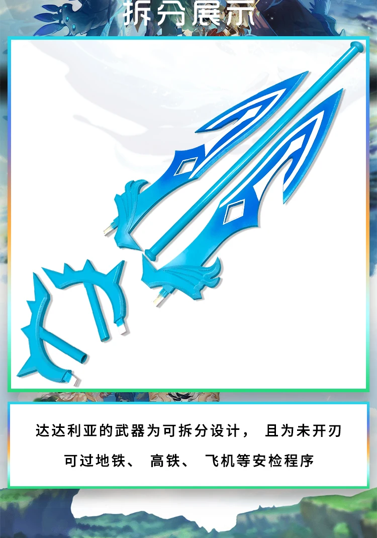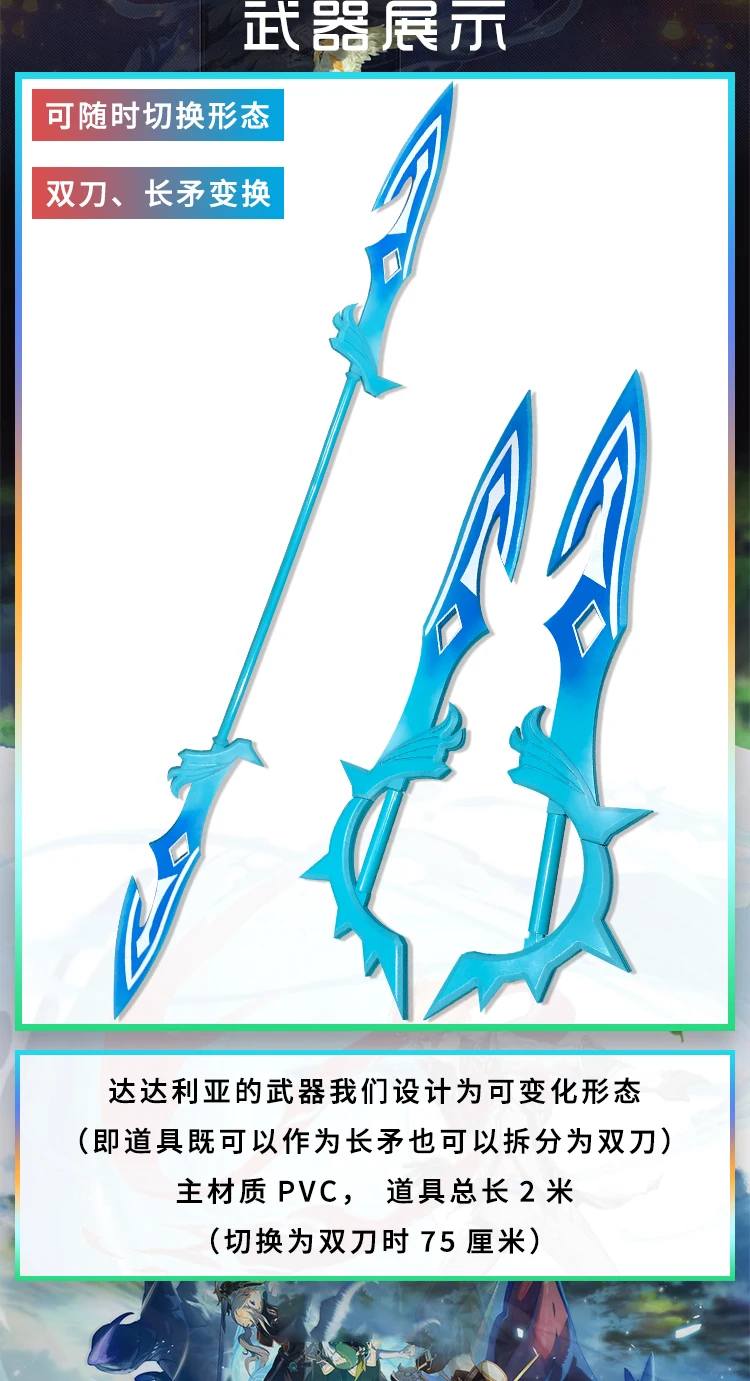 У этой подставки две формы, и вы можете менять ее по желанию. Его можно использовать как копье 200 см, а можно разделить на двойные мечи длиной 75 см