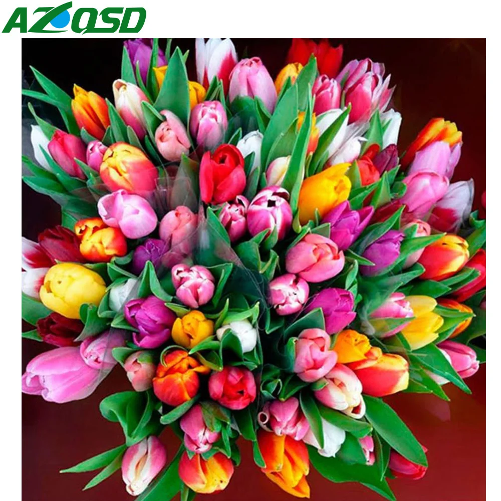 Алмазная картина Название: AZQSD полная квадратная/круглая алмазная живопись тюльпан Ремесленная поделка, алмазная вышивка цветок мозаика ремесло наборы крестиков