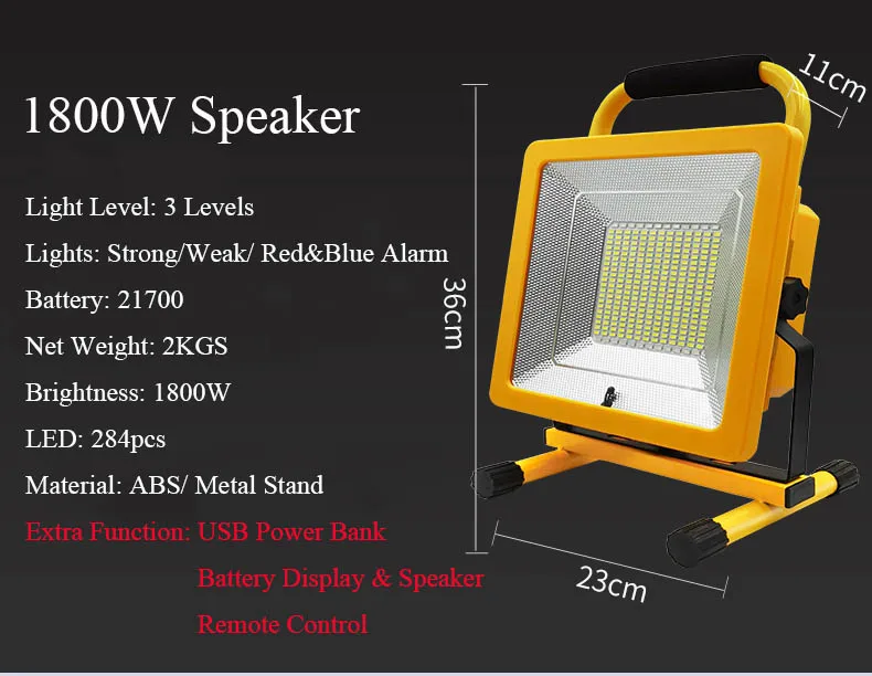 Яркость500 Вт с дисплеем батареиСветильник уровня3 уровняОсвещениеСильный/слабый/красный и синий сигнал тревогиАккумулятор18650Вес нетто1-1.2кгСветодиодный светильник48 шт.МатериалABS/металлическая подставкаДополнительные функцииВнешний аккумулятор USBХарактеристики: