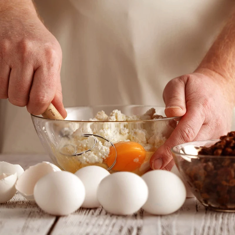 ★Венчик для теста в датском стиле не сгибается и тесто не скапливается на проволочной головке из нержавеющей стали; Он очищает боковую часть чаши, как лопатка, поэтому вы будете использовать меньшее количество посуды.