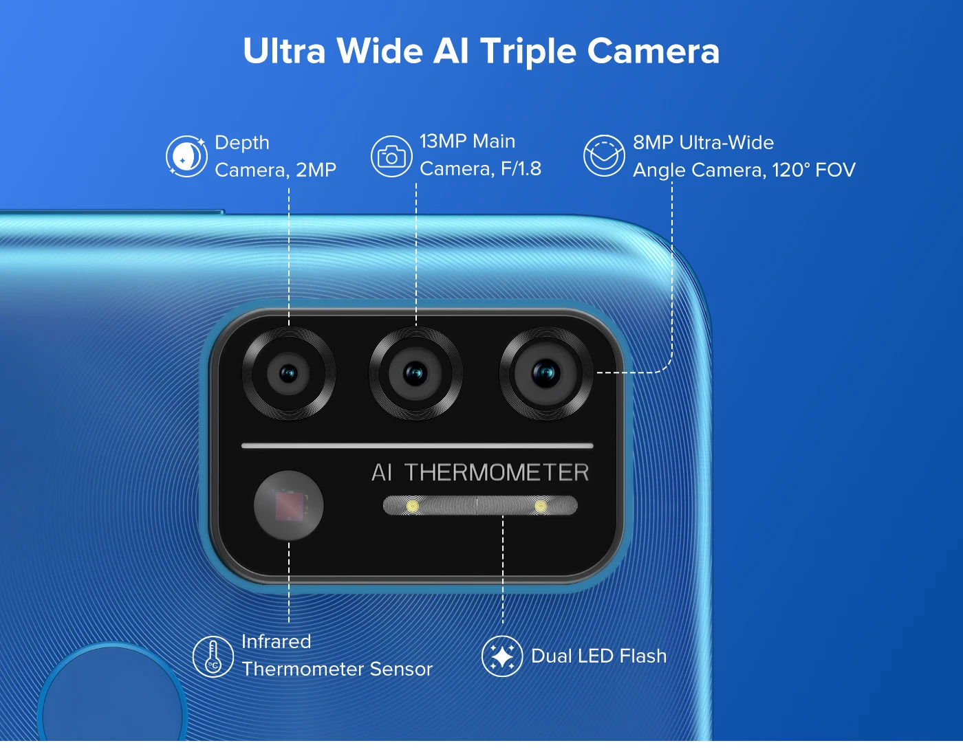 Задняя камера:13MP ультра широкая ИИ Тройная камера