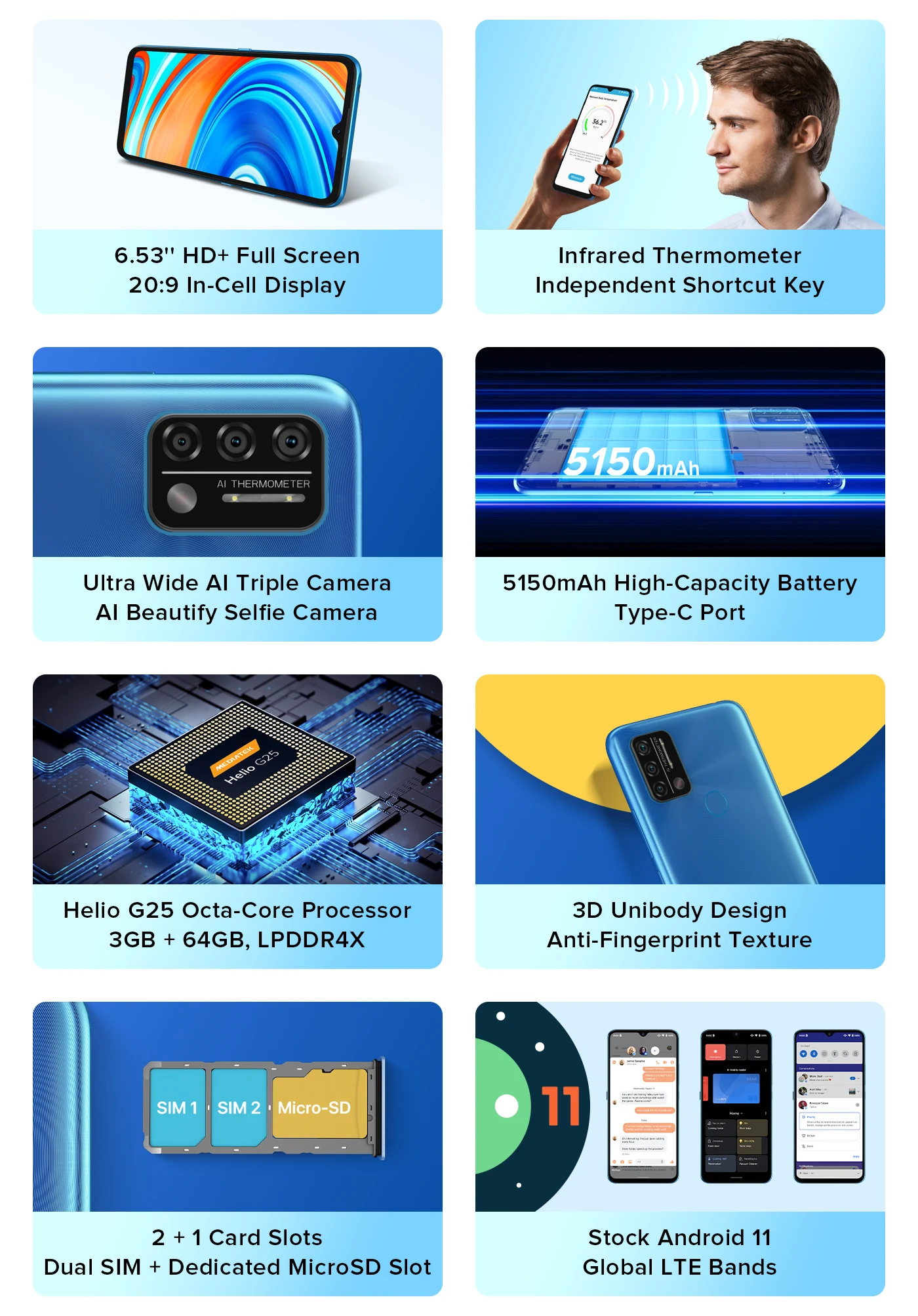 Процессор:MediaTek, Helio G25, 8xCortex-A53, до 2,0 ГГц, Восьмиядерный процессор